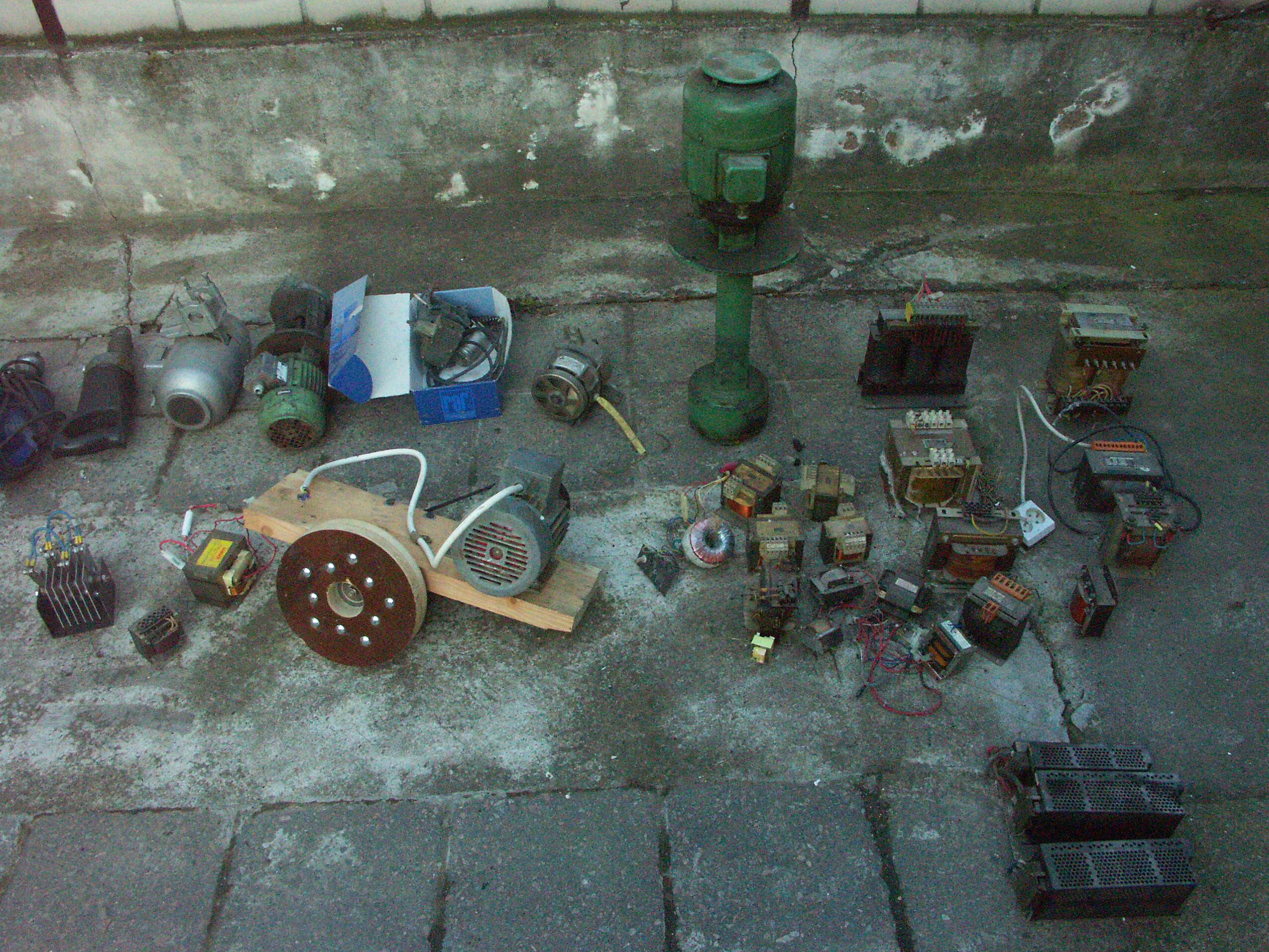 Pokud má někdo zájem o některý z vyobrazených motorů, čerpadel na emulzi nebo transformátorů, je možno vyzvednout u Hulína za 20 Kč/kg.