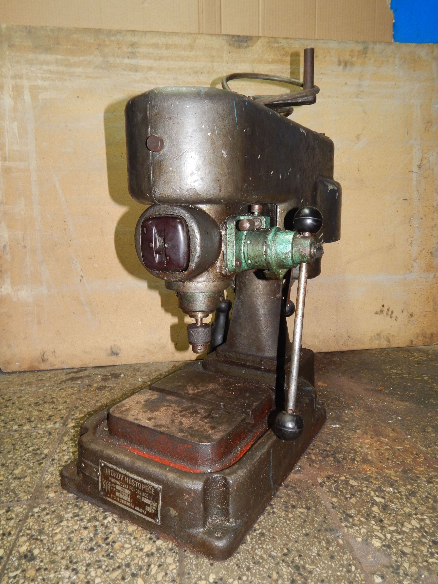 Prodám vysokootáčkovou vrtačku V6 - Jihokov Hustopeče, 380 V, otáčky 1000-6000/min. Půdorys 310x710, hlavička do 6mm.