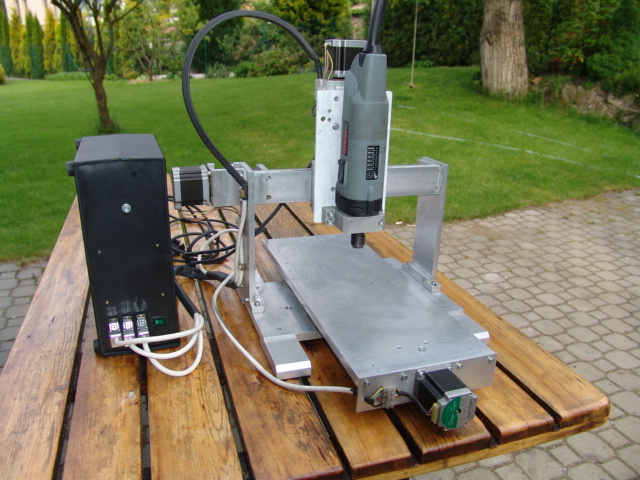 Krokové motory japonské STEP-SYN SANYO DENKI, kuličkové šrouby, využitelná pracovní prostor: 340 x 225x 65mm. Přesnost 0.05mm. Licence MACH3.