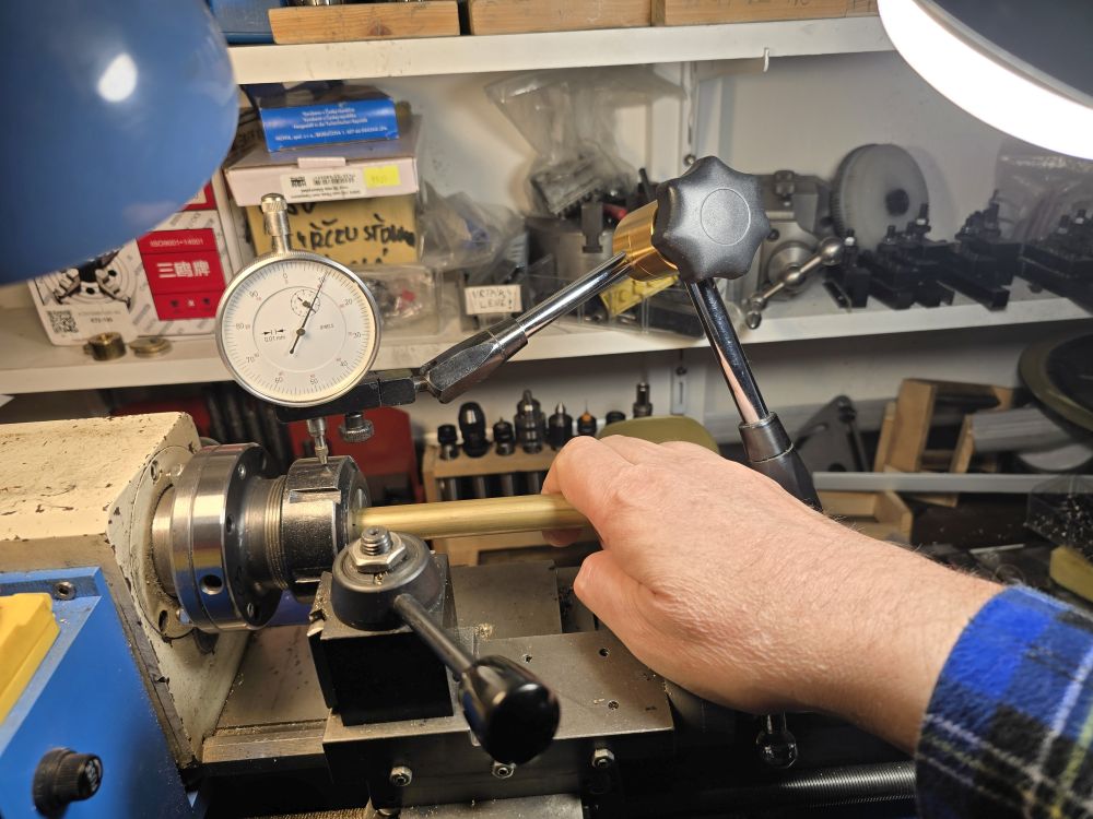 Tady trochu návod - pravda na trochu menším bráškovi ;-) Vřeteno stojí ;-) Tohle měření dělej na vypnuté mašině!!! Horizontalni vule.jpg Táhneš konec kulatiny k sobě nebo tlačíš od sebe. Vertikalni vule.jpg Tlačíš konec kulatiny k loži nebo zdviháš od lože. ano to jsem delal pri nejmensi otackach z...