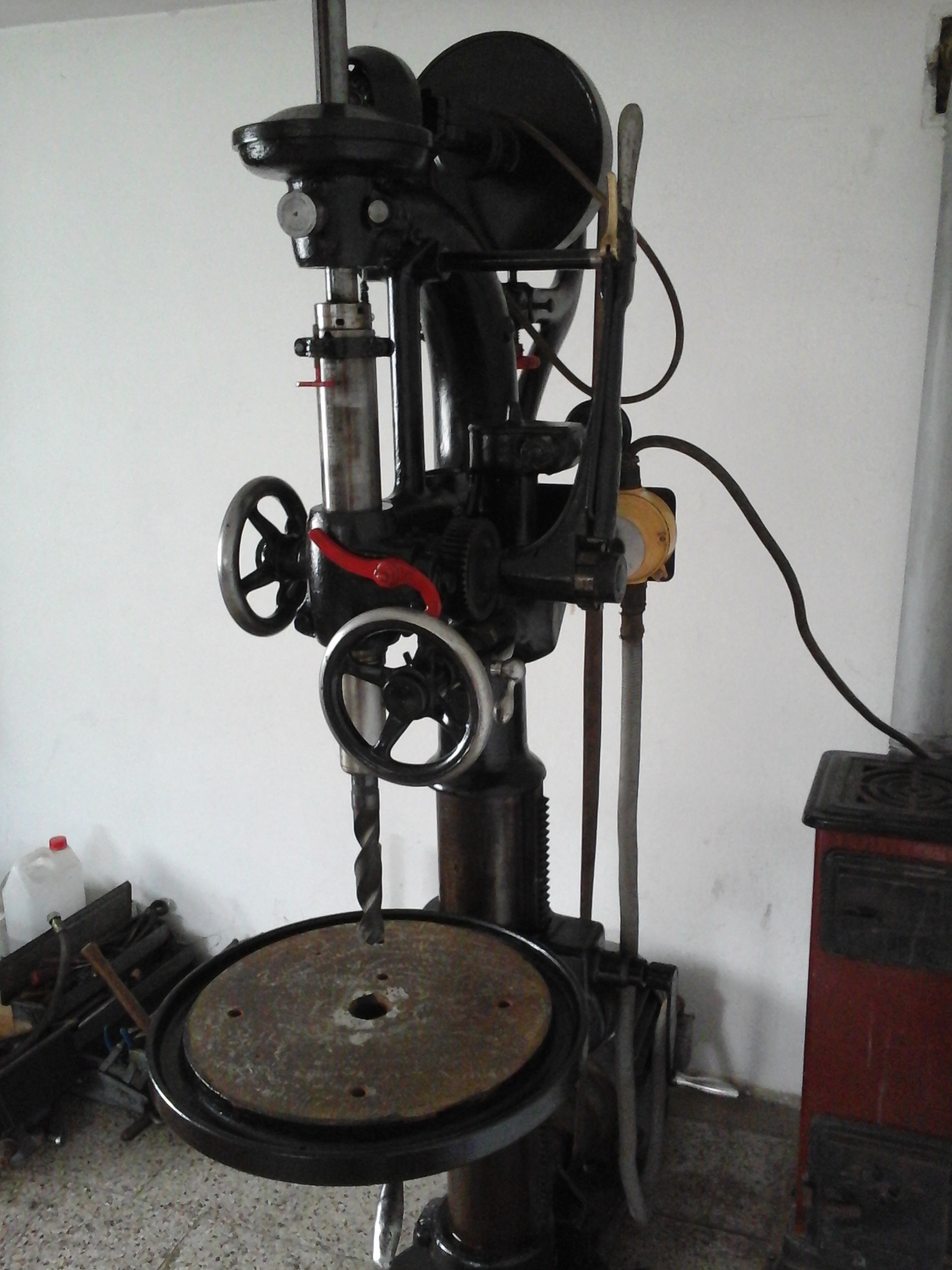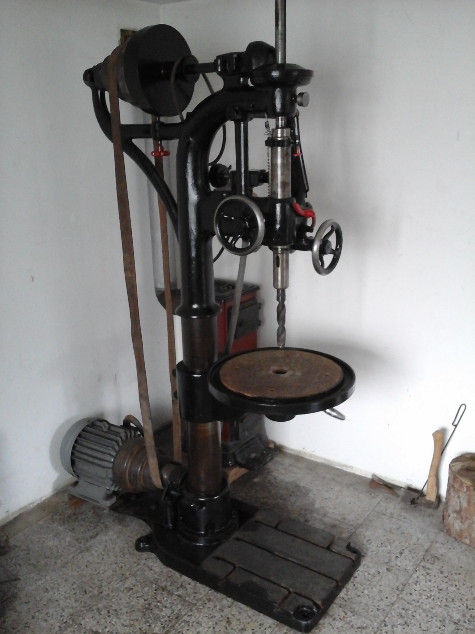 Ahoj oživím starší téma se svojí vrtačkou, kterou jsem zachránil před šrotem a zajistil si tak prvního pomocníka s plochým řemenem. Zatím se mi nepodařilo určit výrobce, podobné stroje vyráběl např. Volman, Arno Plauert, Kocián Neděla, ale vždy jsem našel nějakou odlišnost. Rozdílné je hlavně dělené...