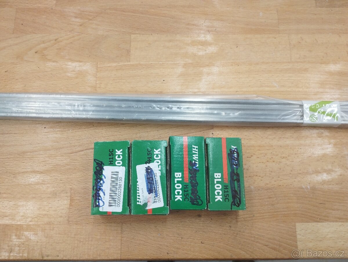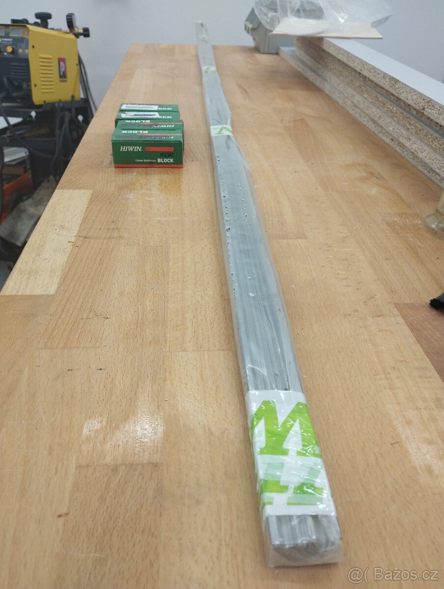 Prodám lineární vedení Hiwin HGH15 Kolejnice 2m 2ks, vozíky 4ks.Cena 4500 za komplet