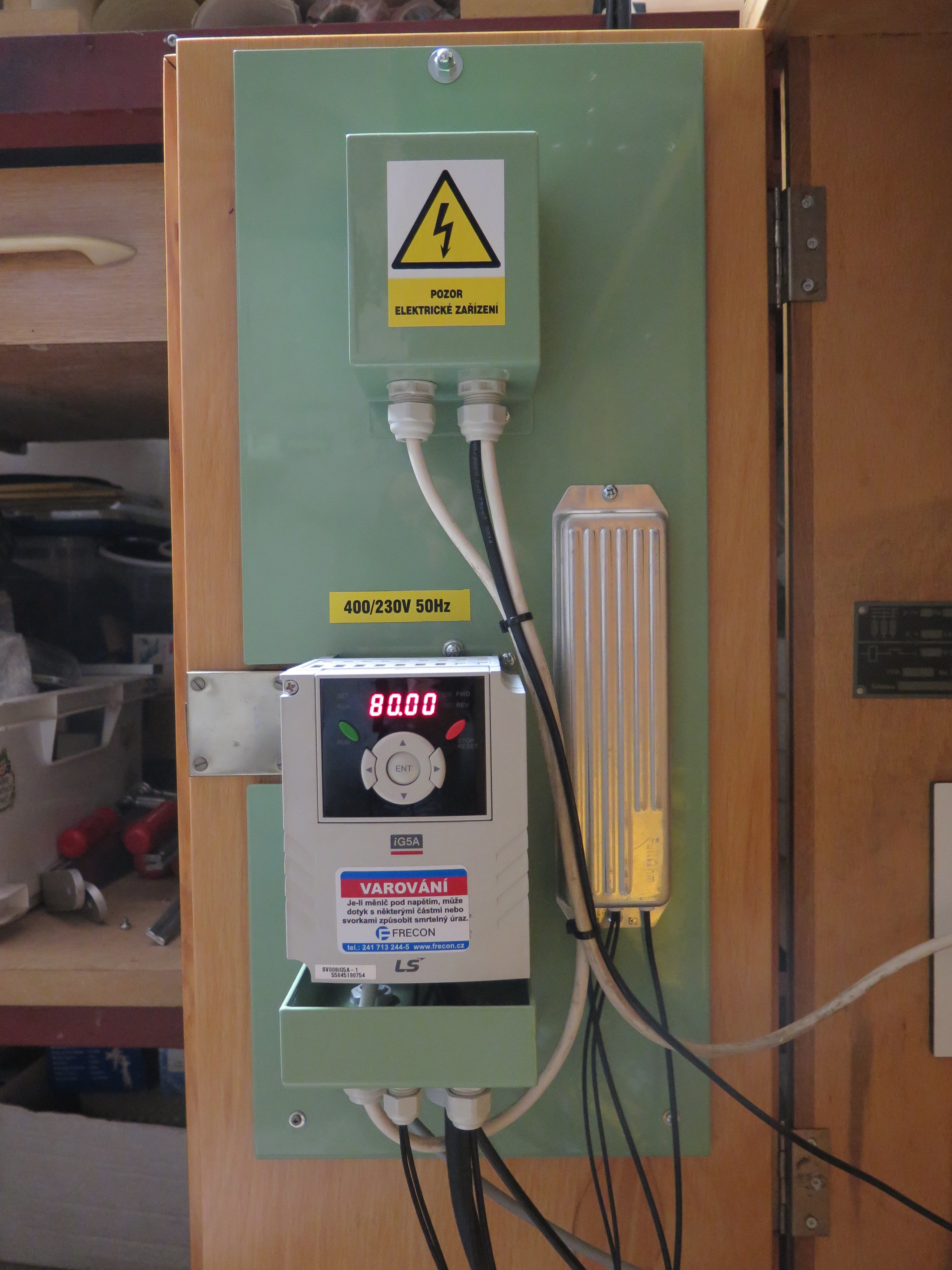 Tady je ješte ovládací panel ale už sem to sem nekam dával . Já sem tam vše nechal a řemen mám na prostřední řemenici na vřeteníku když to vypnu tak soustruh se zastaví skoro na fleku