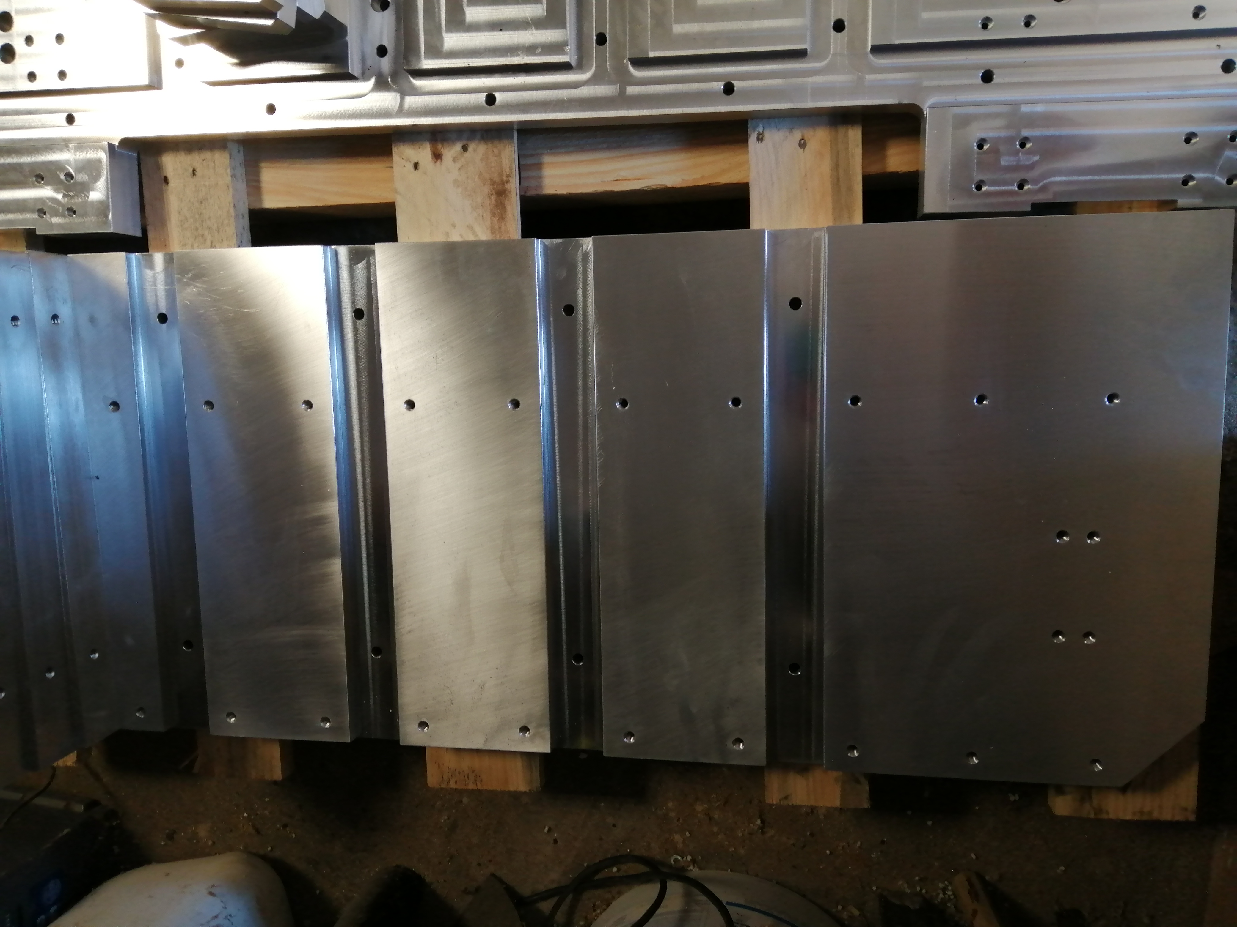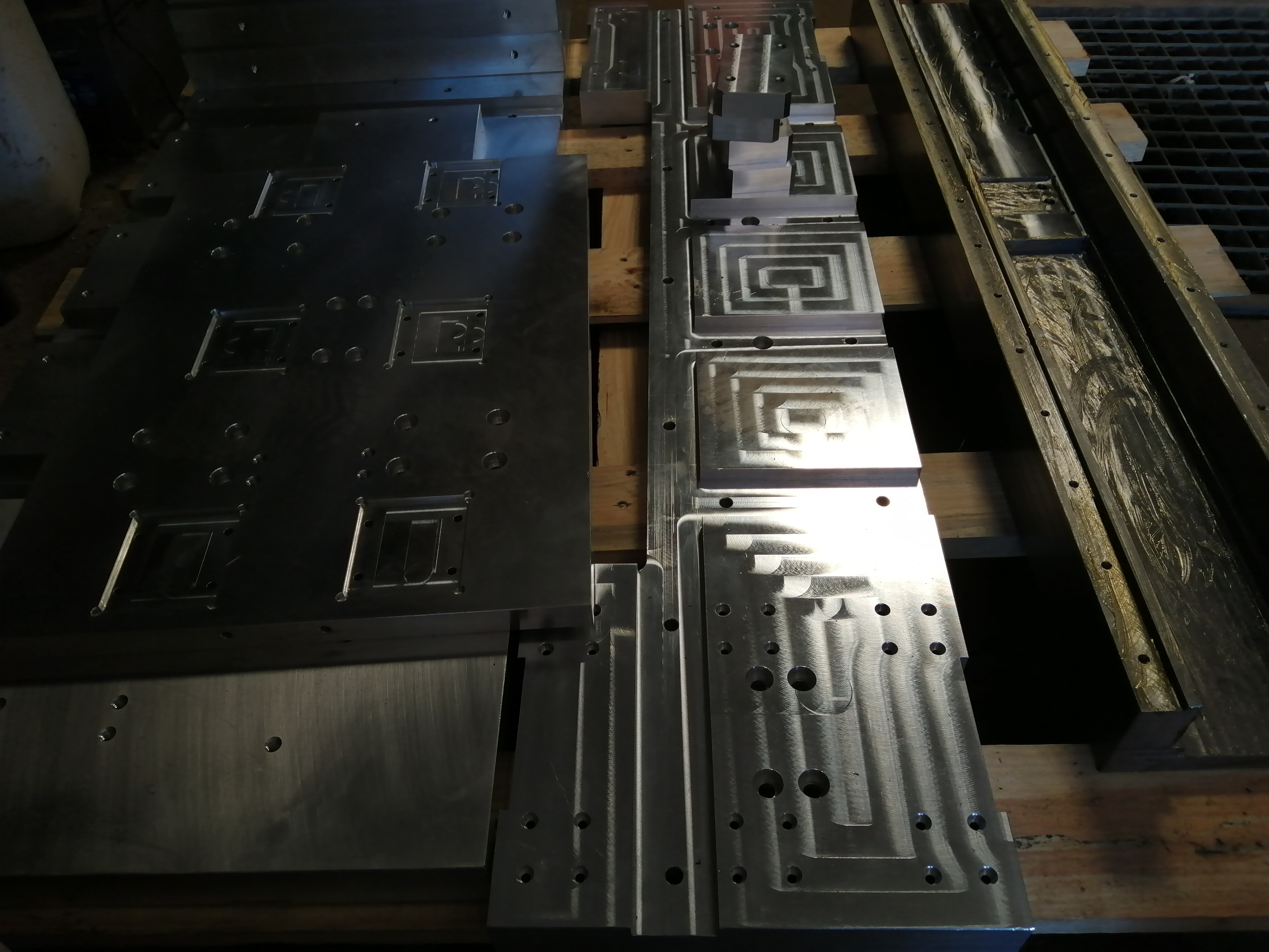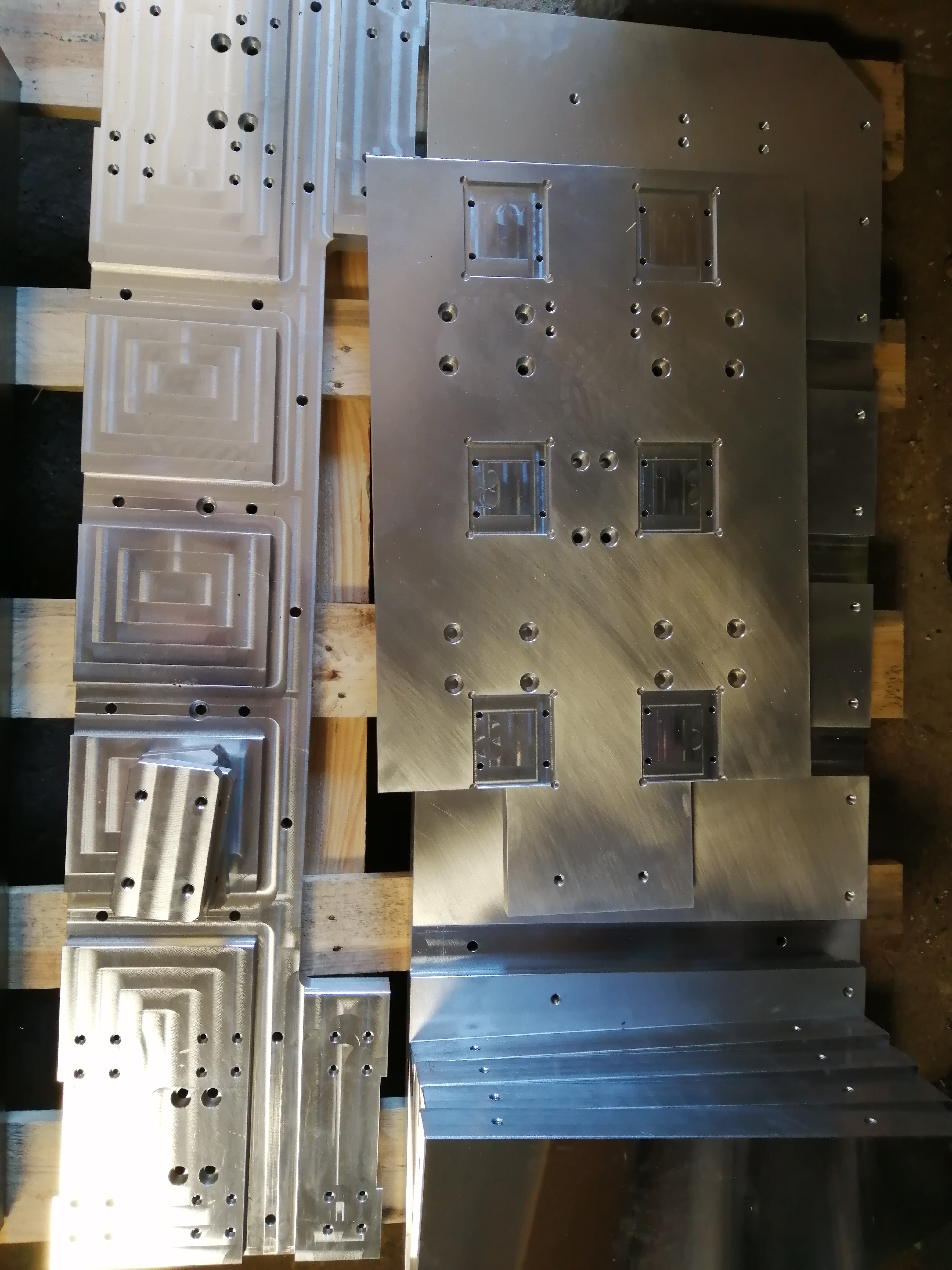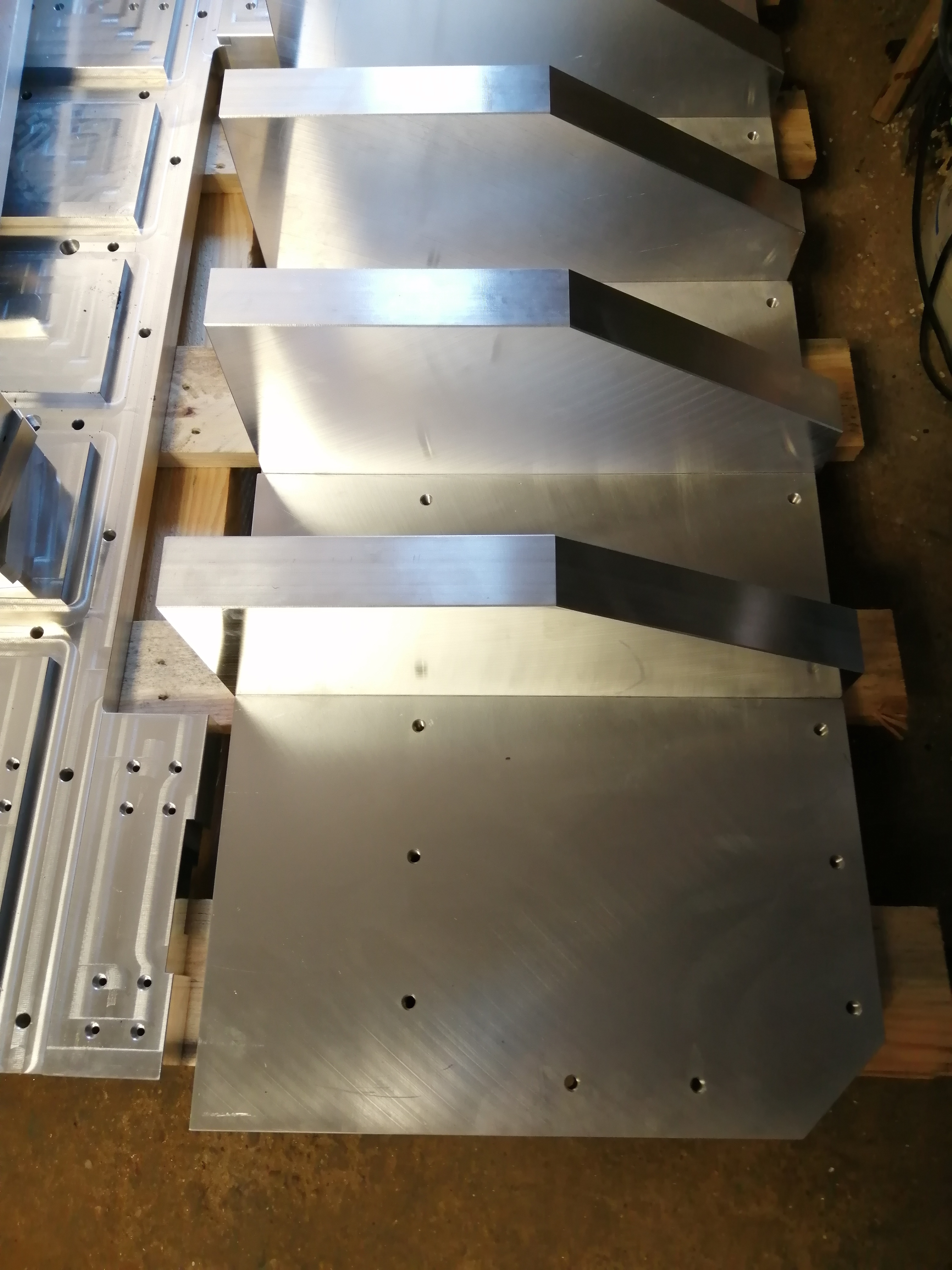 Zdravim, takmer vsetky diely su z konstrukcnej ocele. okrem Os Y ktora je z hlinika koli dynamike. Drziak vretena je tiez zelezny z 3 dielov. Najprv som chcel polotovar pod kolajnice navarit, zmenili sme to na srobovany spoj s kolikmi a lepidlom. Nasledne sa opracovali kolajnice. Takze ocel je S355 ...