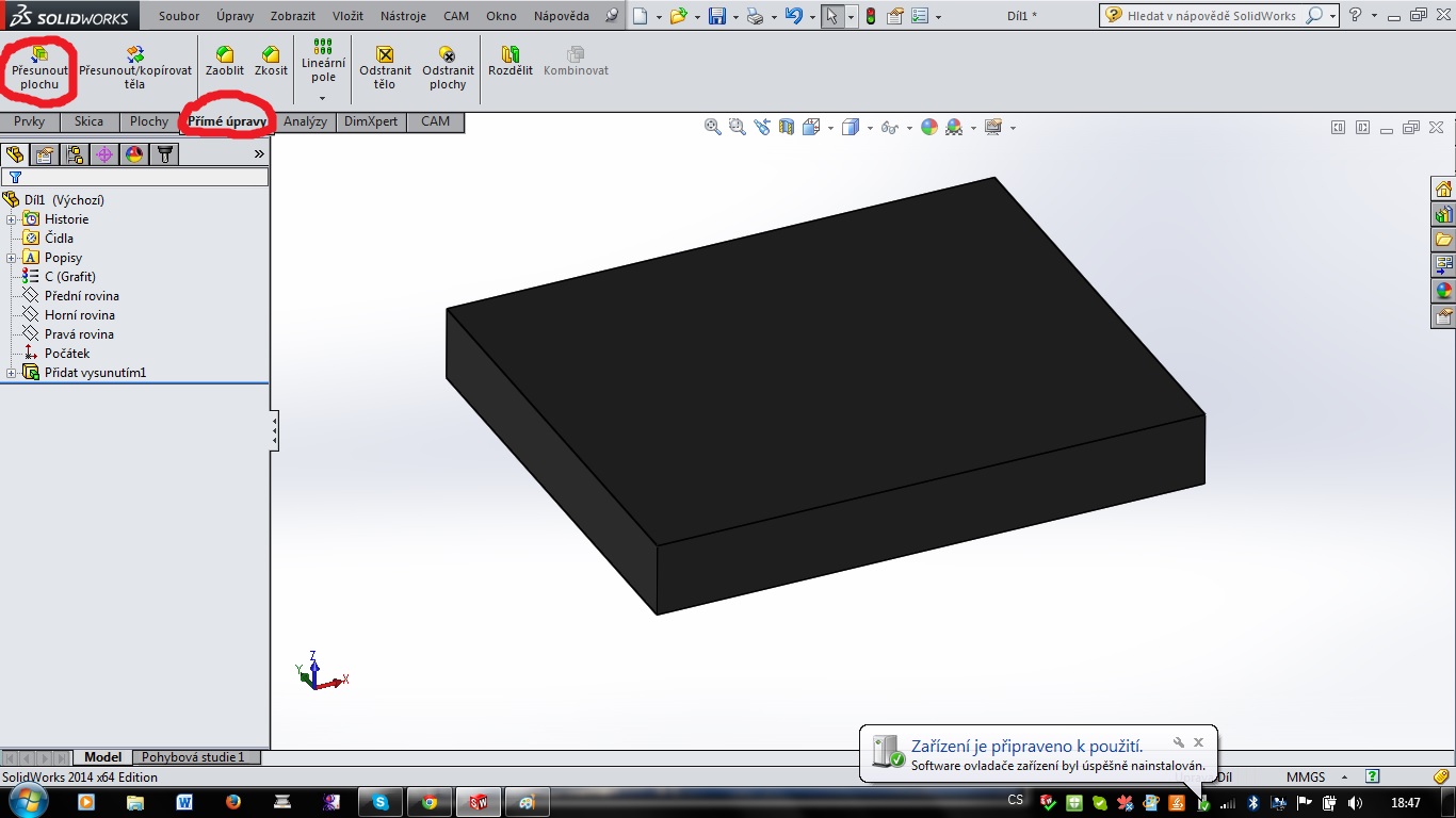 To chce odchytit problém ..... Měl jsem trochu volný víkend, tak byl čas testovat a možná jsem už lokalizoval co způsobuje to že HSMW nereaguje na změny v modelu. Pokud je v SolidWorks změněna geometrie pouze některým z příkazů pro přesun plochy,(jsou to přesunout, odsadit a otočit) tak HSMW neregi...