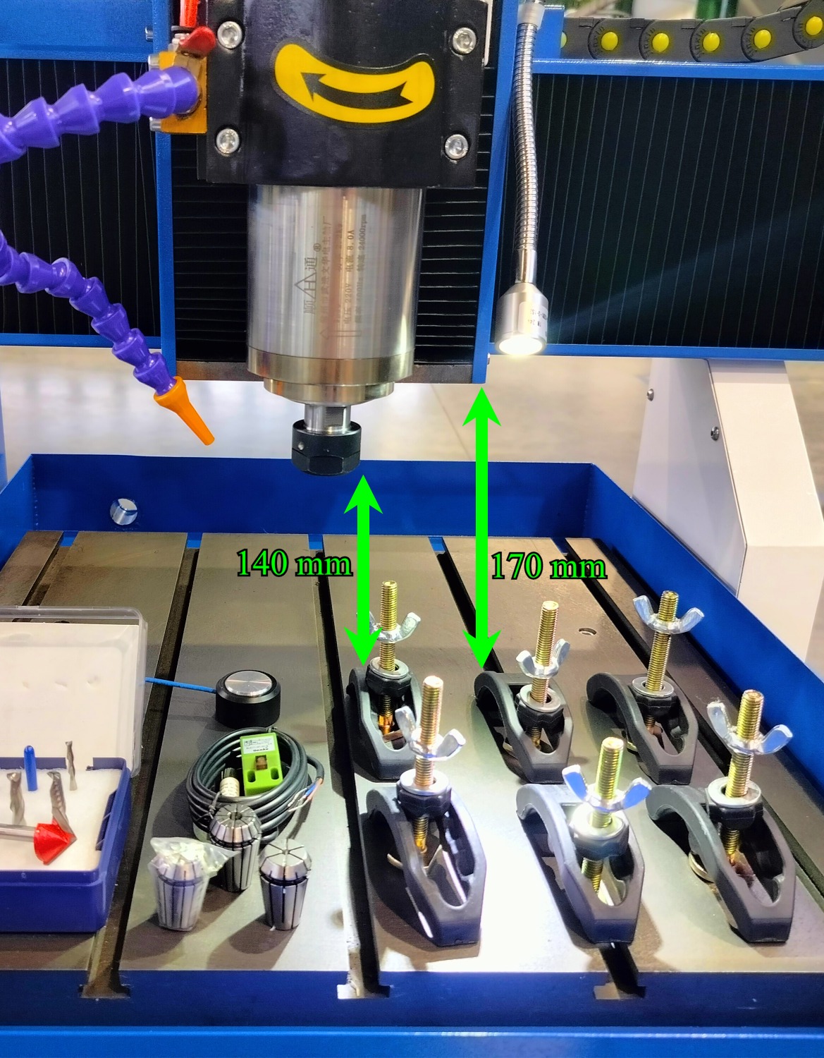 Vřeteno se dá posunout nahoru na těch 170mm výšky. Programovací manuál pro systém.