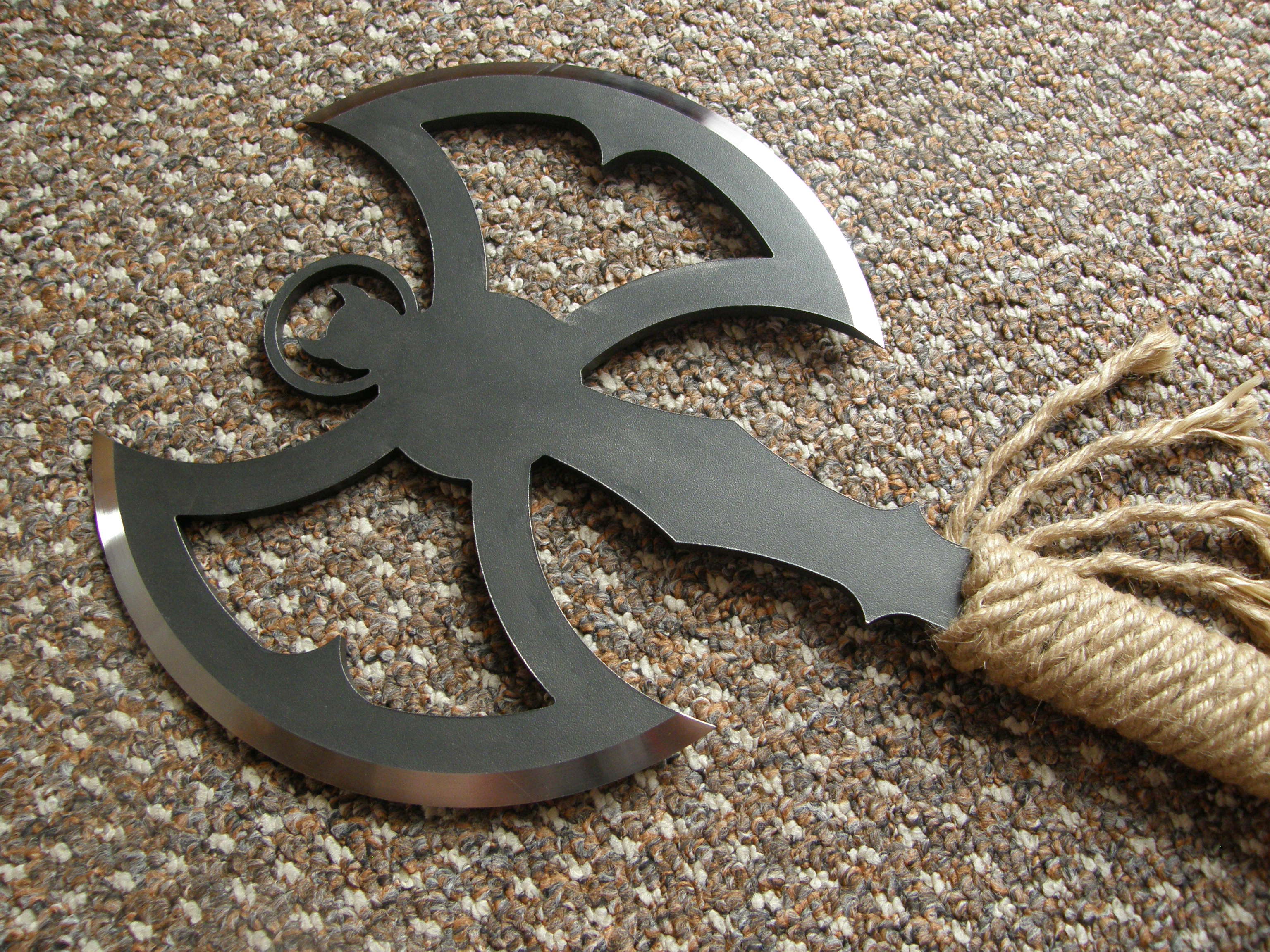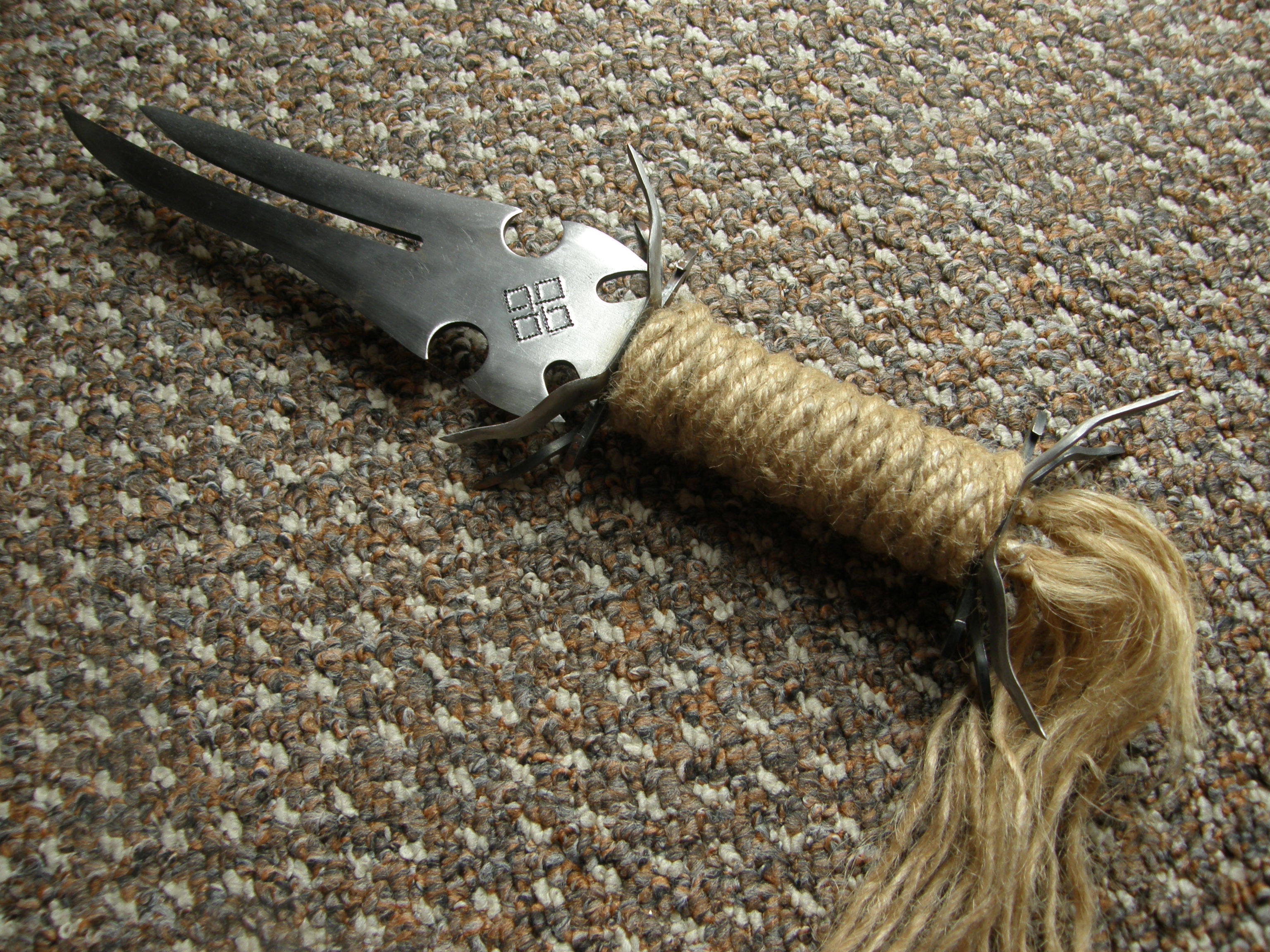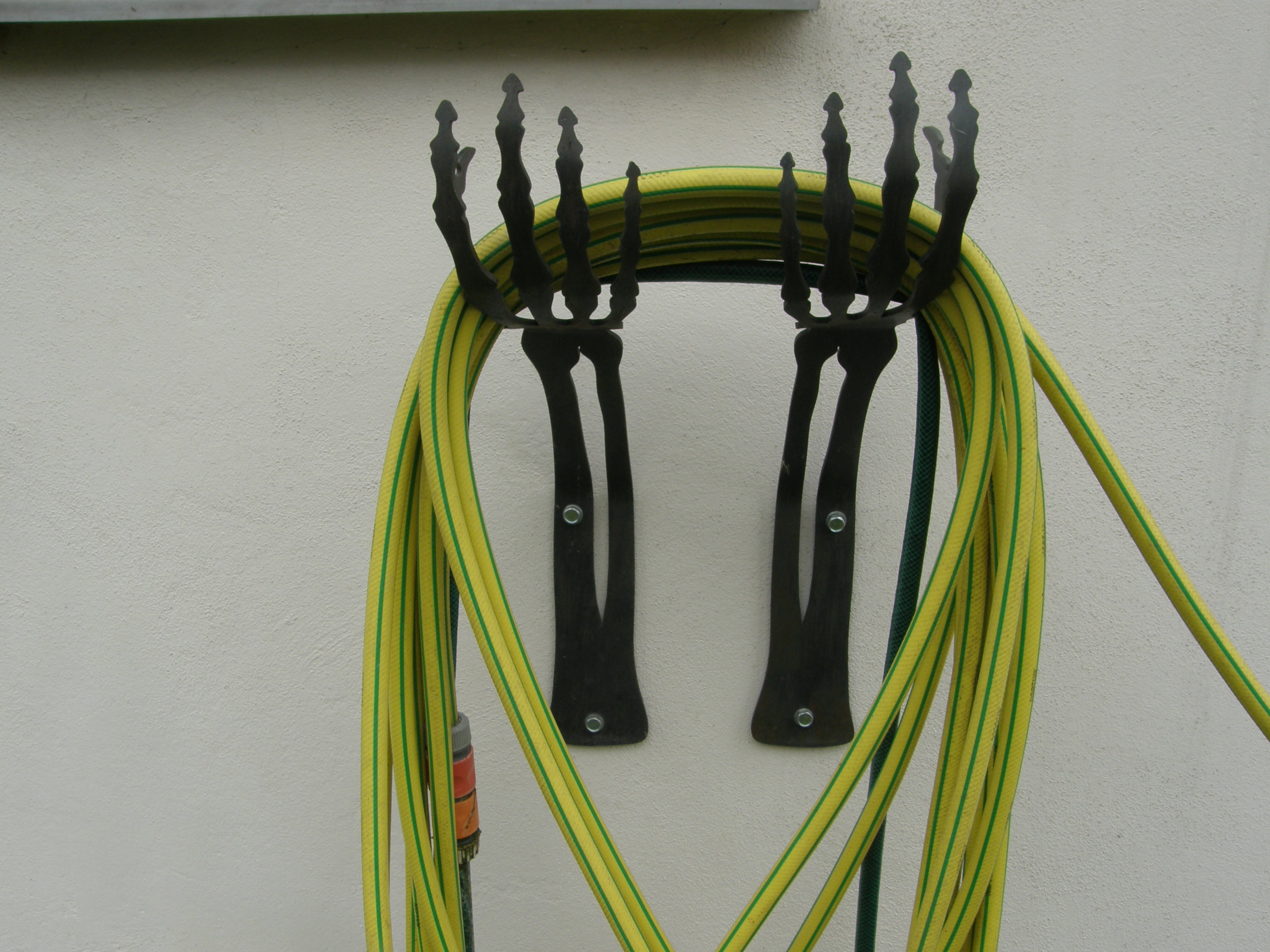 1. Držák čehokoliv - tady zahradní hadice 2. Sekera - velikost cca 60cm 3. Nůž - velikost cca 40cm 4. Hádanka - na co to asi je?
