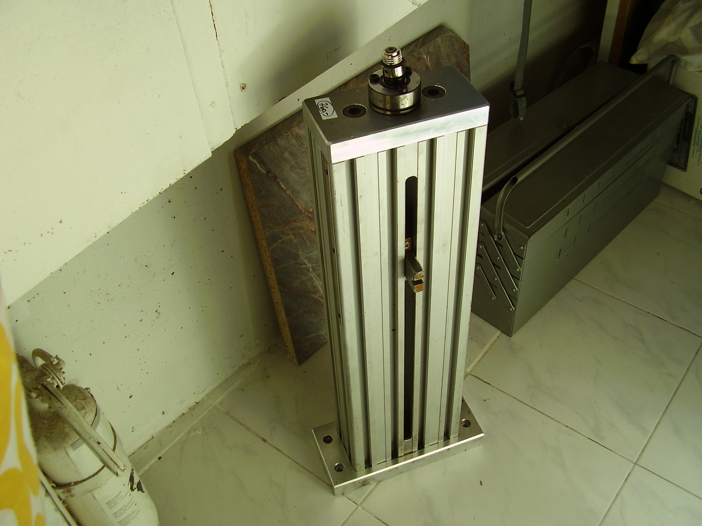 vreteno pojde do tej kocky(treba zvacsit otvor-je to nahodna kupa z kovosrotu),stiahne sa skrutkami a ta kocka bude behat na linearoch po Z-ose (tam treba vymenit obycajnu skrutku za gulickovu-povodna skrutka je na konci ohnuta,ale za 760Kc to asi nebola zla kupa :D )