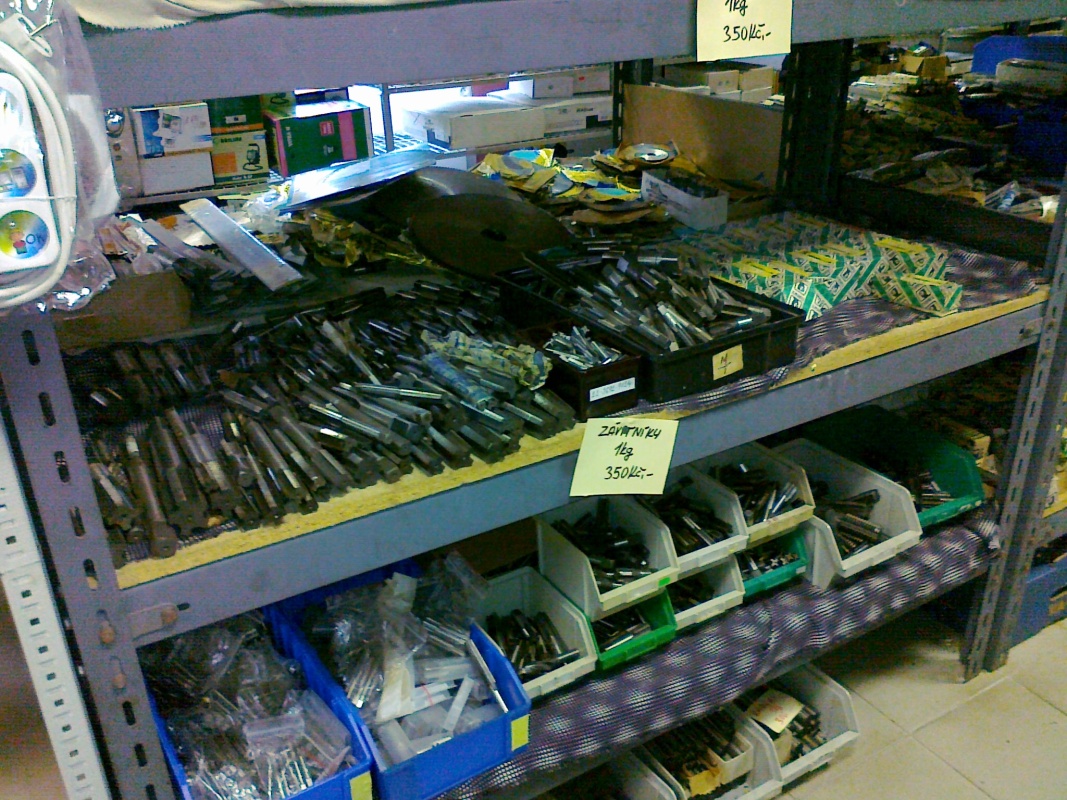 Doplním obrázky - malé věci jsou přebrané, tedy trochu výběr jen velké rozměry a specialitky = velká váha, frézy 300/kg, strojní pilníky 100/kg - ostatní je patrné z obrázků. Nechte si časovou rezervu, je třeba se v tom prohrabat. Nebyl problém se domluvit na návštěvě i o víkendu.