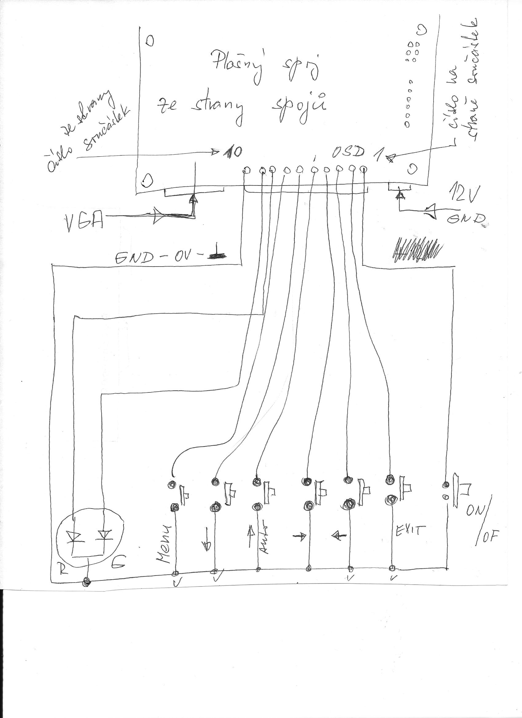 Toto platí pro LCD 15". Problém je tento. Mezi dvojpinovým konektorem +12V a videokonektorem je další bílý konektor. To je OSD.