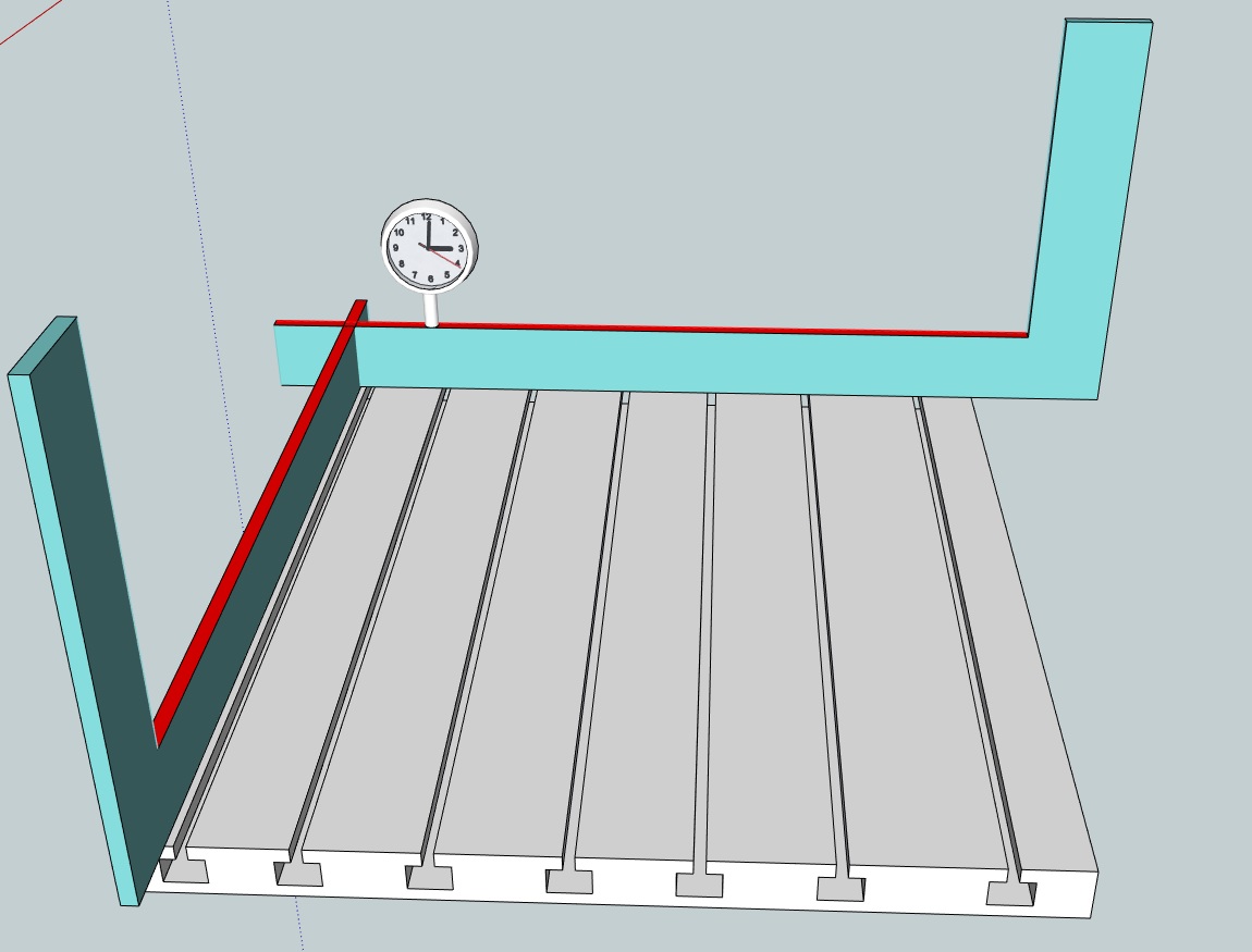 Tak napřed si proměř přímost os X Y na nějaké dobré rovné pravítko (třeba jak to máš na obrázku a vypodlož to tak, aby konce byly v nule a uvidíš přímost - hodinky na Z). No a uvidíš, jak jsi úspěšně namontoval kolejnice. Pokud jsi se s tím nepáral, jak jsi naznačoval jinde, tak budeš smutný. Ale pojďme dále, vezmi si nějakou kostku (máš-li johansonku, je to nejlepší volba), stačí i nějaká dobře paralelně nabroušená a pak si to změř v nějakém rastru (např. 50 mm) a uvidíš, jak ti běží stůl s osou před opracováním. Pokud tam nebudou extrémy na braní, tak to ofrézuj a opakuj měření. Jen ještě upozornění, že rovinnost stolu bude pak závislá na přímosti os X a Y. U některých profi strojů je stoly nefrézují, ale hoblují po sestavení vlastním strojem.