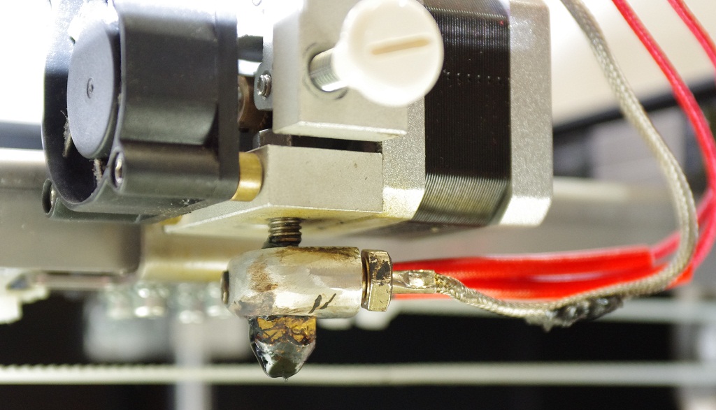 kostičku s topením jsem si udělal novou. Na aukru někdo prodává 40W topný kartuše a bral jsem od něj také termistor v provedení s M6 závitem. Trysku jsem musel přebrousit trošku do špičky, jinak ta placka matlala plast kolem sebe