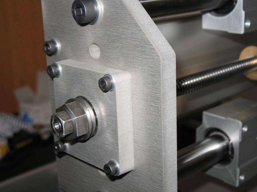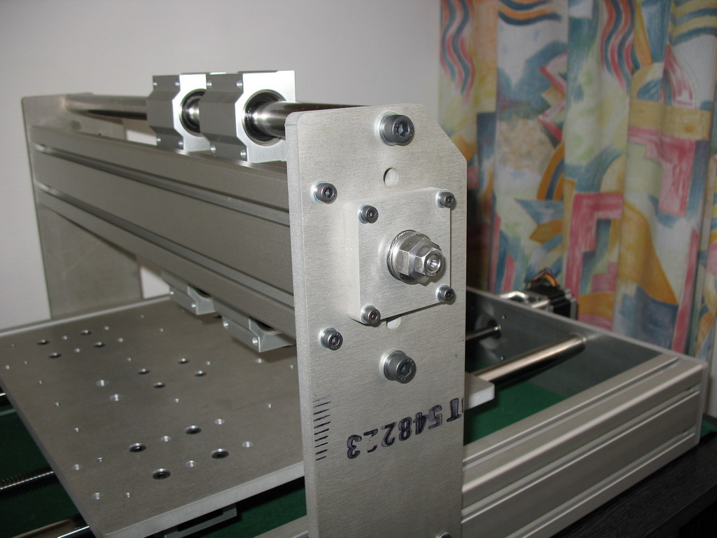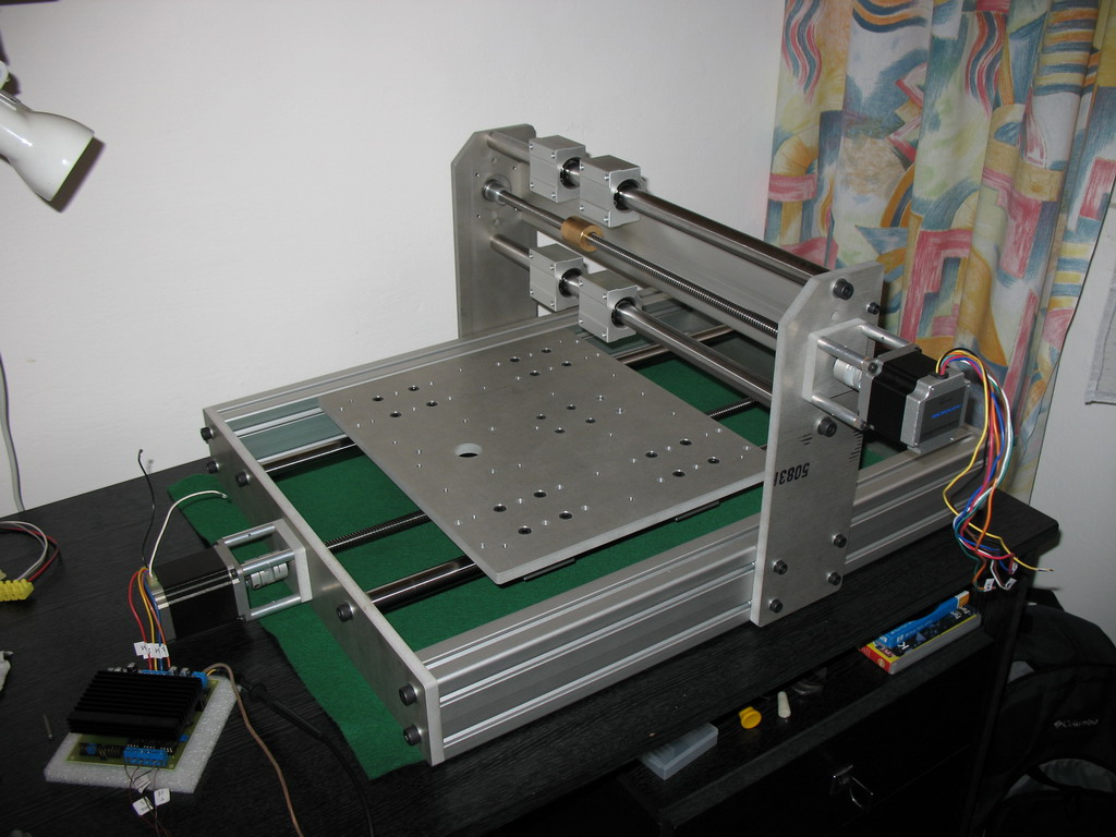 Mam hotovou jen osu X, jezdi to po 20mm tycich + kulickove lineary, delka 600mm, prac. prostor 380mm, trapez 12/3, bronz matka, motor 1Nm Microcon SX23, driver TA8435, 32V. Y bude to same co X ale Z nemam doresene. Vreteno bude Kress. PS. Mam to na takove to domaci frezovani