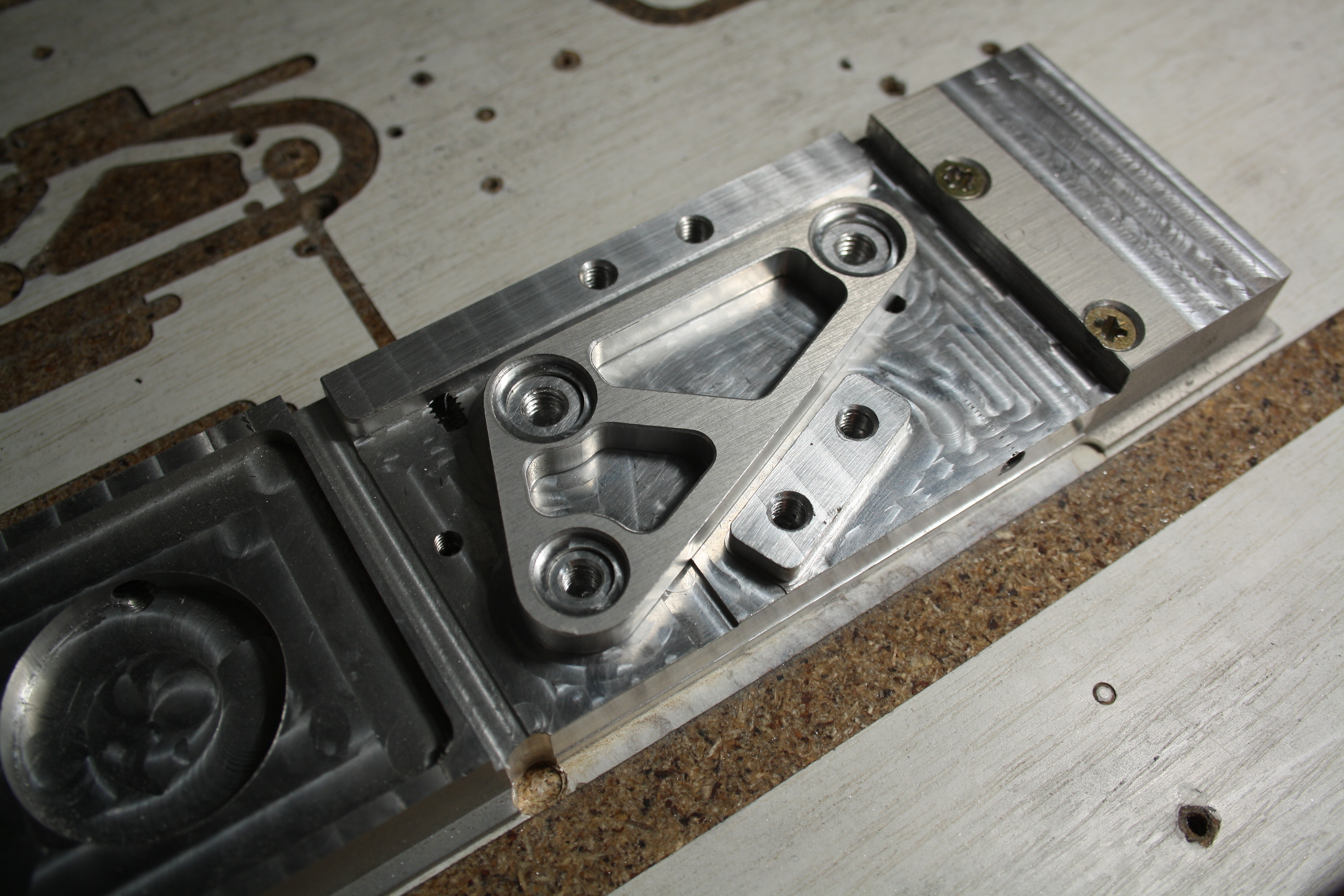 přípravek: a páka po ofrézování zapuštění z rubové strany (je to hnuté asi o 0,1mm bokem, hlavně na sražení hran je to poznat) nevím proč ale první fotka je tam dvakrát, a v textu při editaci ne, někde asi bude chyba
