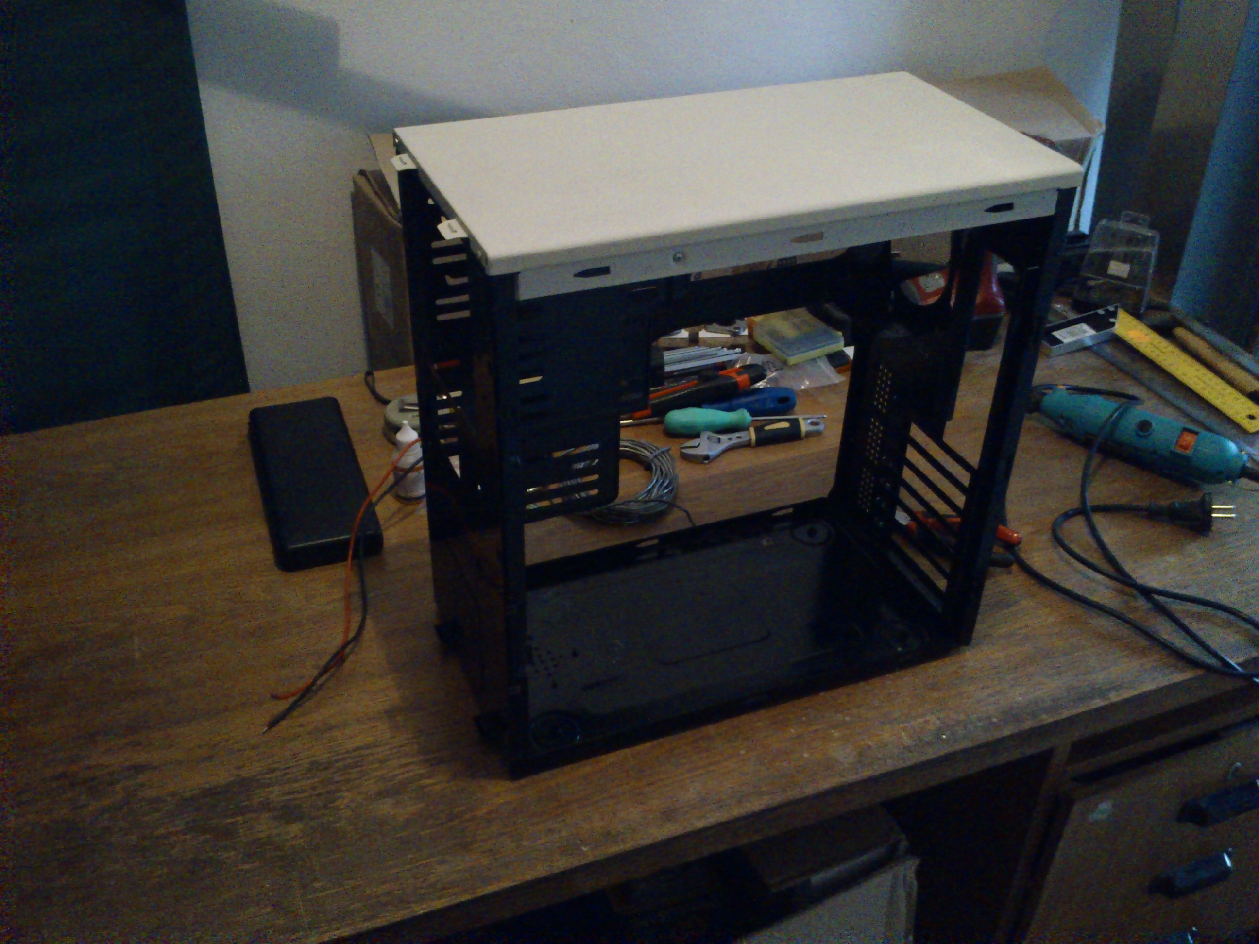 Mimo to jsem otestoval PC a bude třeba ještě úprava, dal jsem tam špatný disk, systémový zůstal v původní skříni, takže na test šel do šuplíku, ještěže jsem ho tam dal.