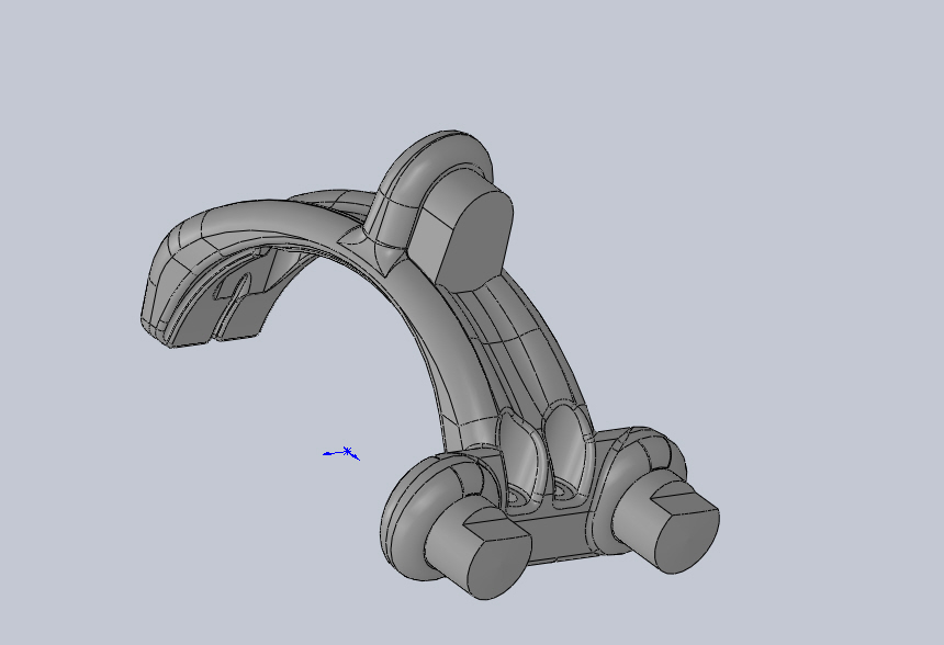 na jeho spodní rovné ploše si vytvořím skycu a pomocí ofsetu si vygeneruji křivku obrysu o cca 3-5mm větší než je vlastní výrobek. tuto křivku vytáhnu v těleso, ale nespojím s modelem! sílu vytažení volím podle tloušťky materiálu ze kterého budu vyřezávat polotovar, např. 25mm .