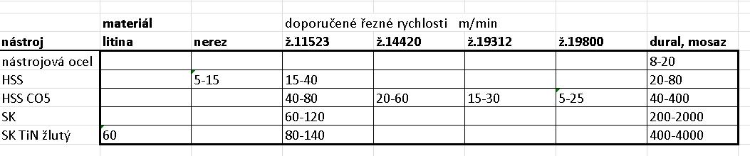 opsal jsem cvičně hodnoty doporučených řezných rychlostí někde z počátku této diskuse a dal je do tabulky - nástroj, materiál - řezná rychlost.