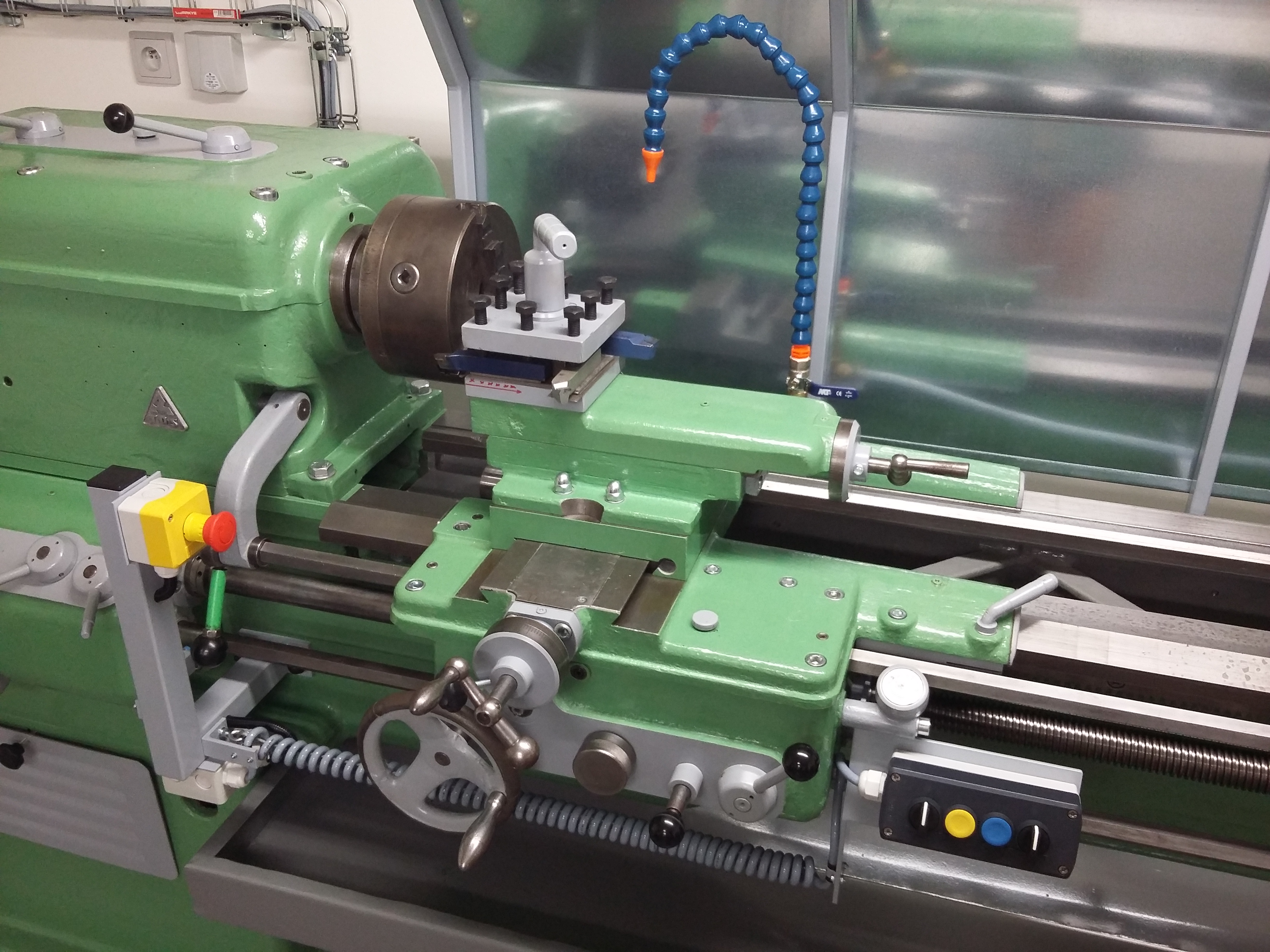 A zkoušeli jste tento knoflík (zatlačit / vytáhnout), pozor je to blokované s pákou zapínání vodícího šroubu pro řezání závitů.Fairytale píše:Dobrý den, mám takovou otázku. Nemůžeme přijít , jak se zapíná příčný posuv u tohoto soustruhu. Buď jsme tak hloupý, nebo nám nefunguje. Děkuji