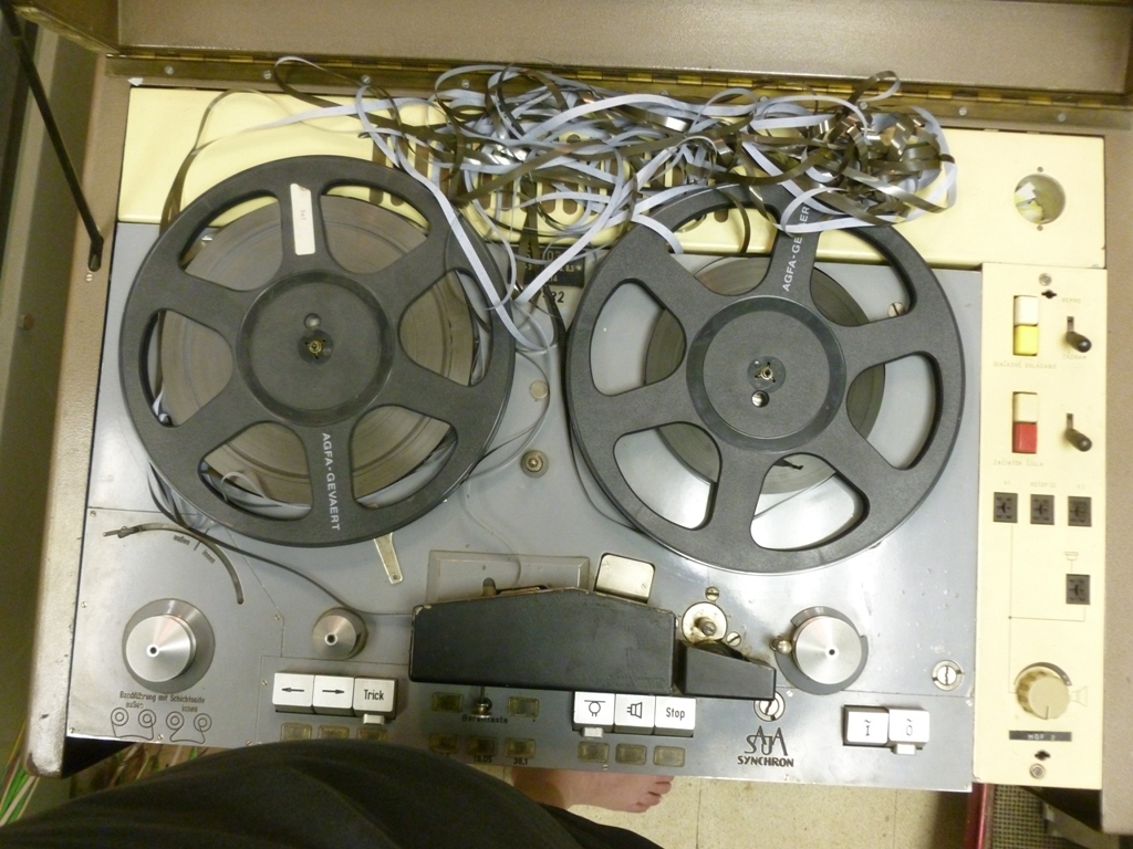 zachránili jsme dneska před šrotem část zařízení - pult Tesla a tři mgf, původně zařízení studia ČRo v Ústí nad Labem