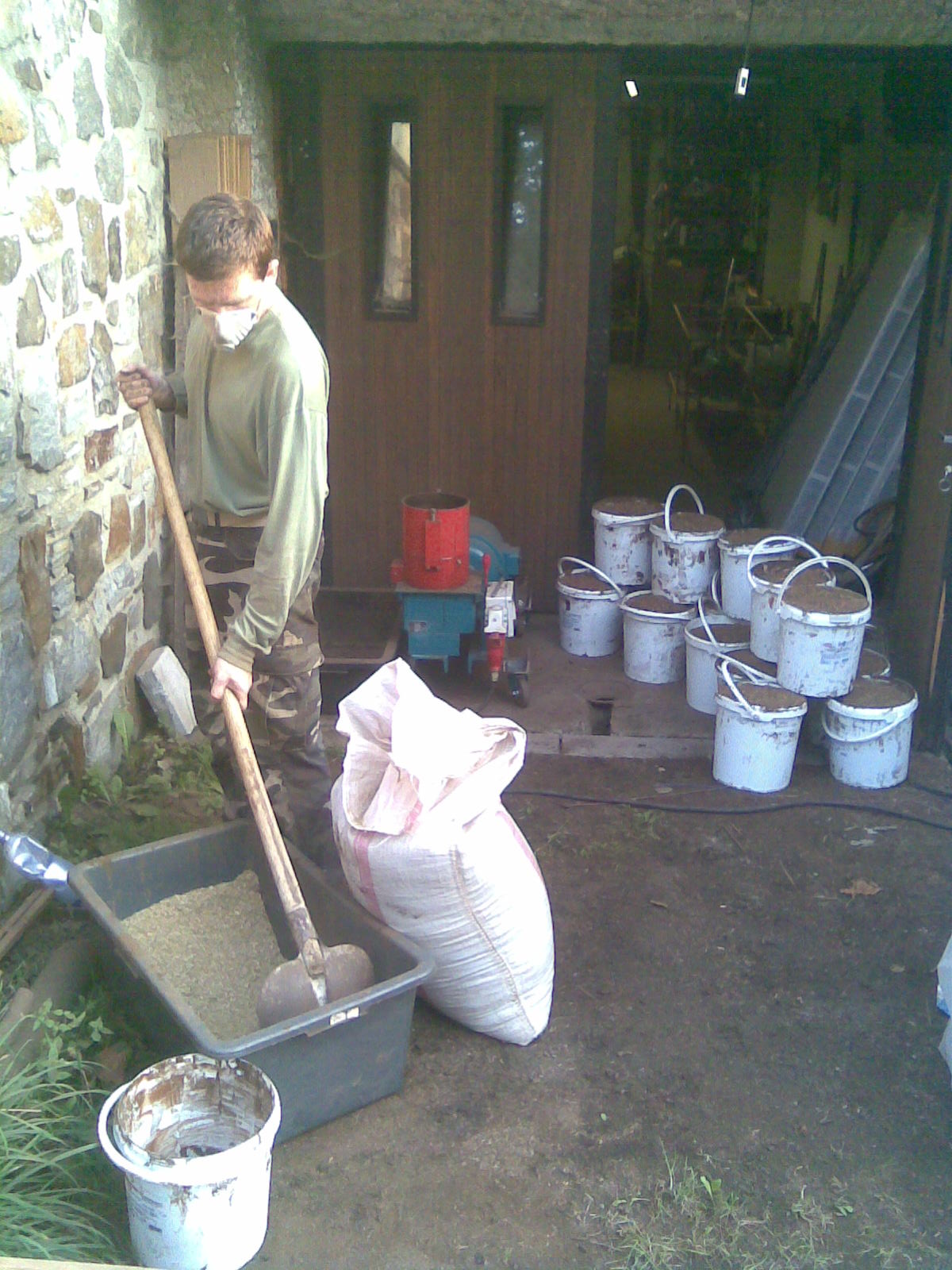 Materiál jsem sypal ručně z kýblu a dovlhčoval rozprašovačem.
