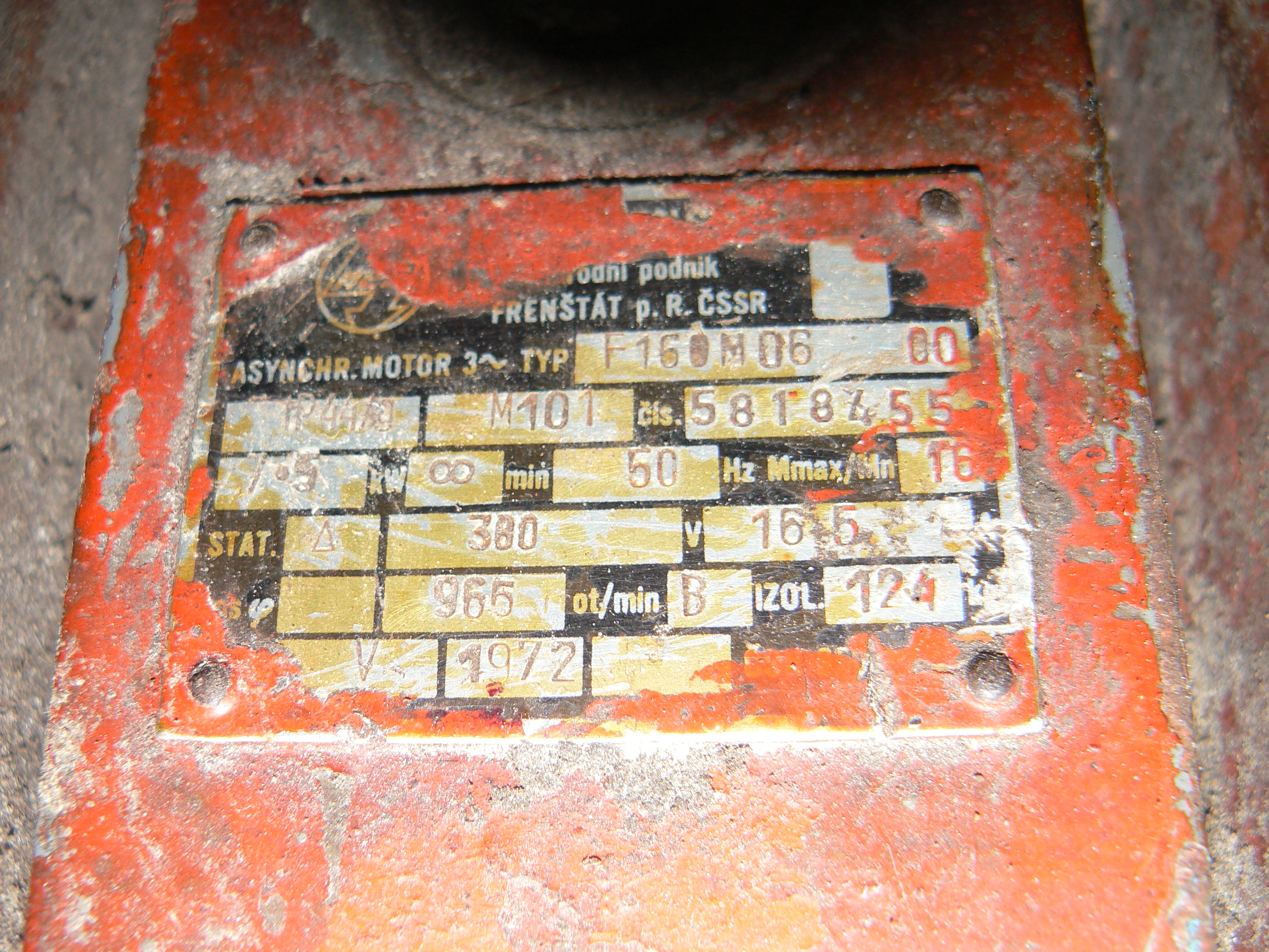 Dále prodám motor 7,5 kW, 965 ot . Motor je sice postarší, ale za provozu je tichý a bez jakýchkoliv vibrací