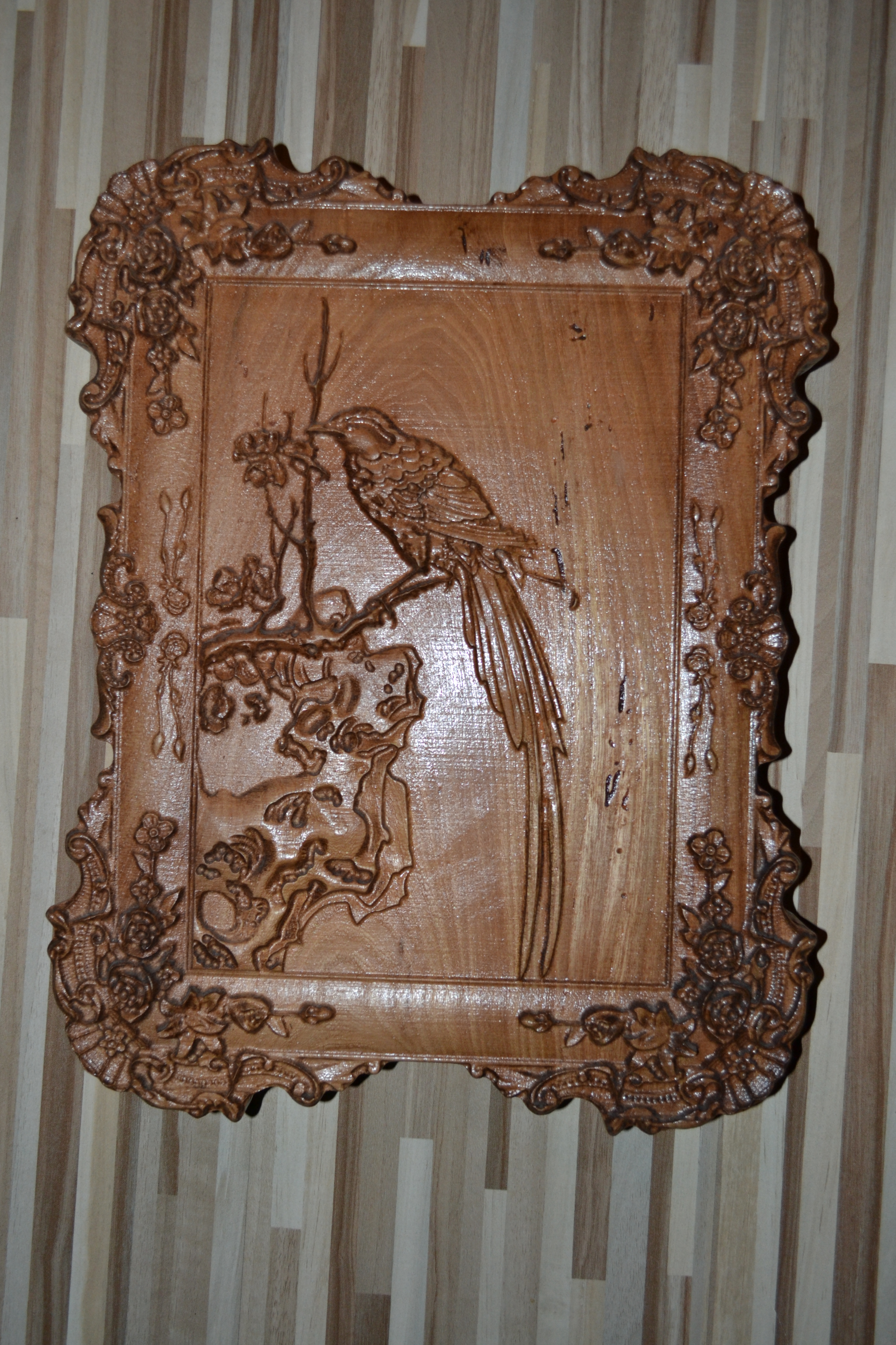 A teď proč píši. Vyrábím si dřevořezby fotka níže. Problém je že například tento obrázek jsem dělal přes 11 hodin. Rychlost pojezdu mám 1.9 m/min, když dám víc, motory mi už ztrácí krok. Chtěl bych tedy obráběni co nejvíc zrychlit. Samozřejmě za rozumnou cenovou hladinu, CNC mám jen jako hoby.