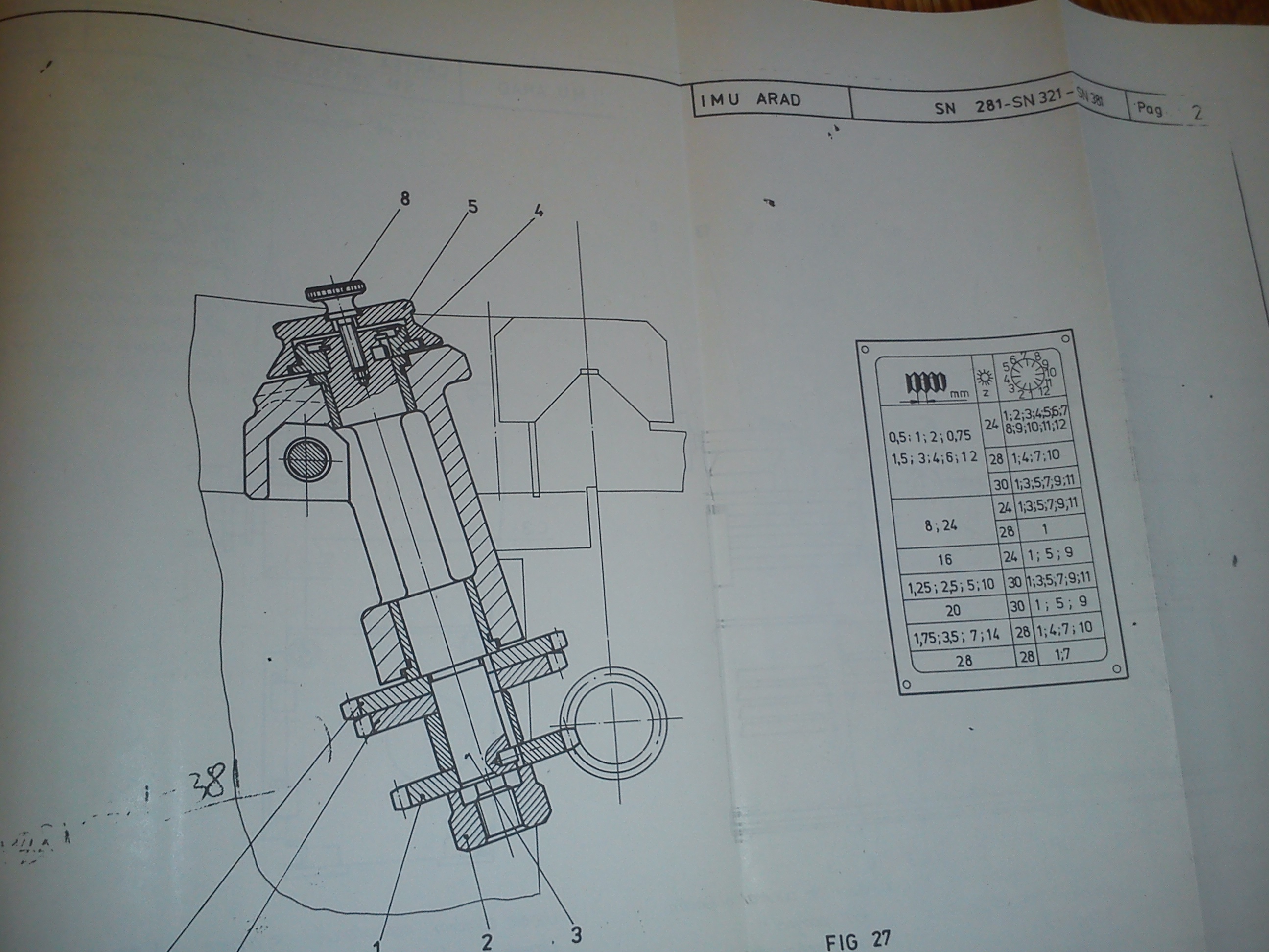Na boku podélného suportu je zařízení které se dá zpojit do stoupání šroubu pro posuv.