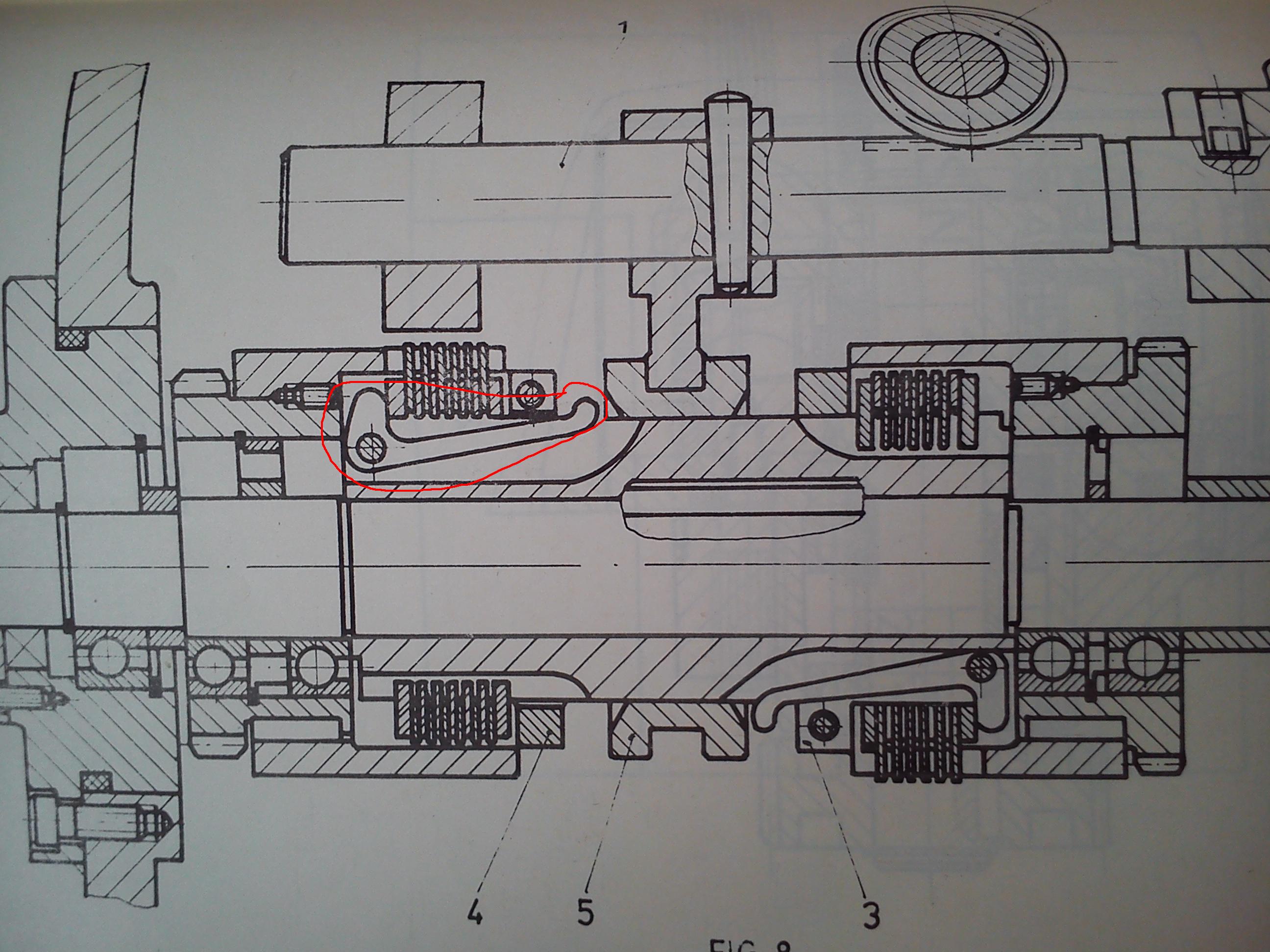 Podle výkresu jsou na spojce páčky, který zmáčkne přesuvný kroužek a tím spojí motor s vřetenem.