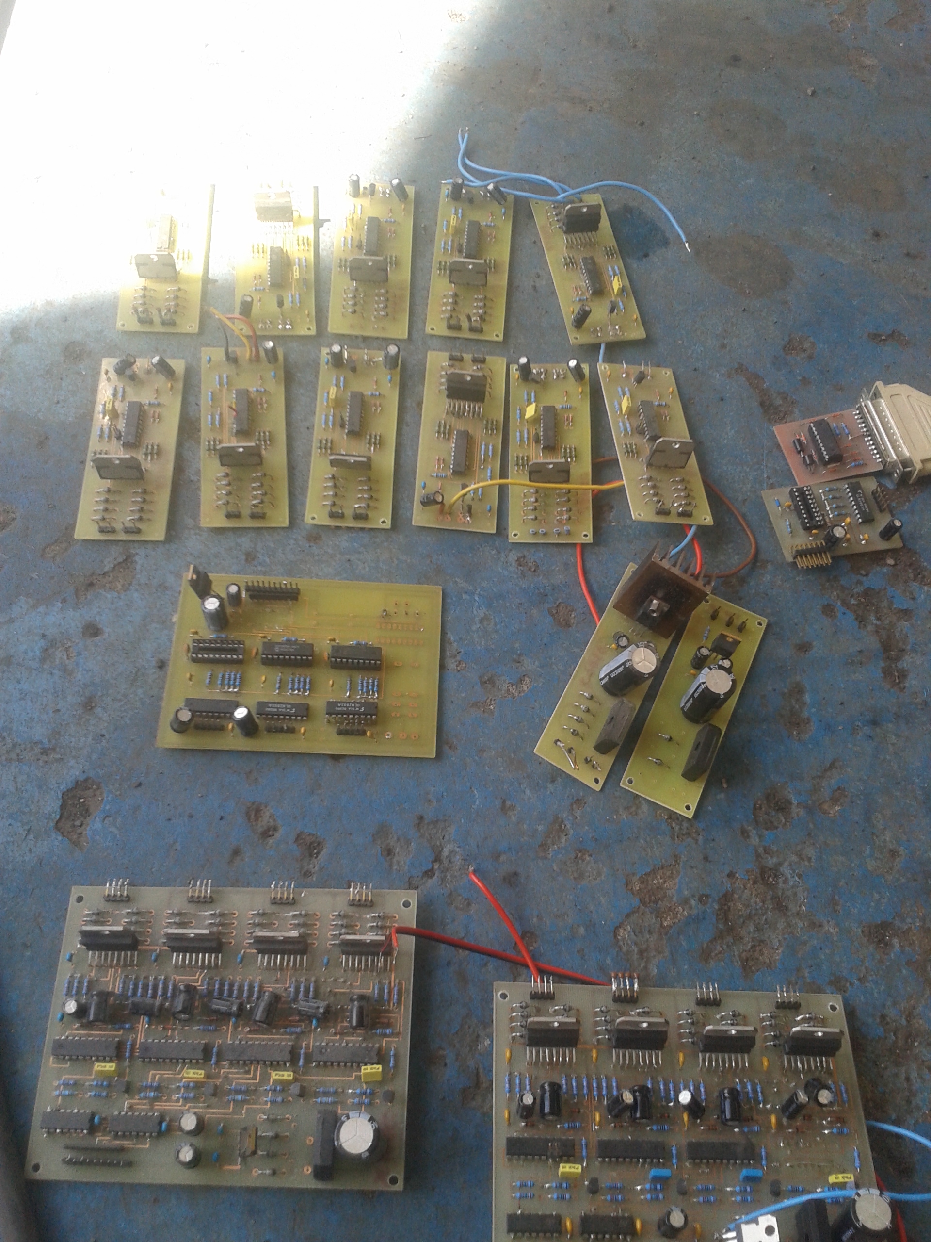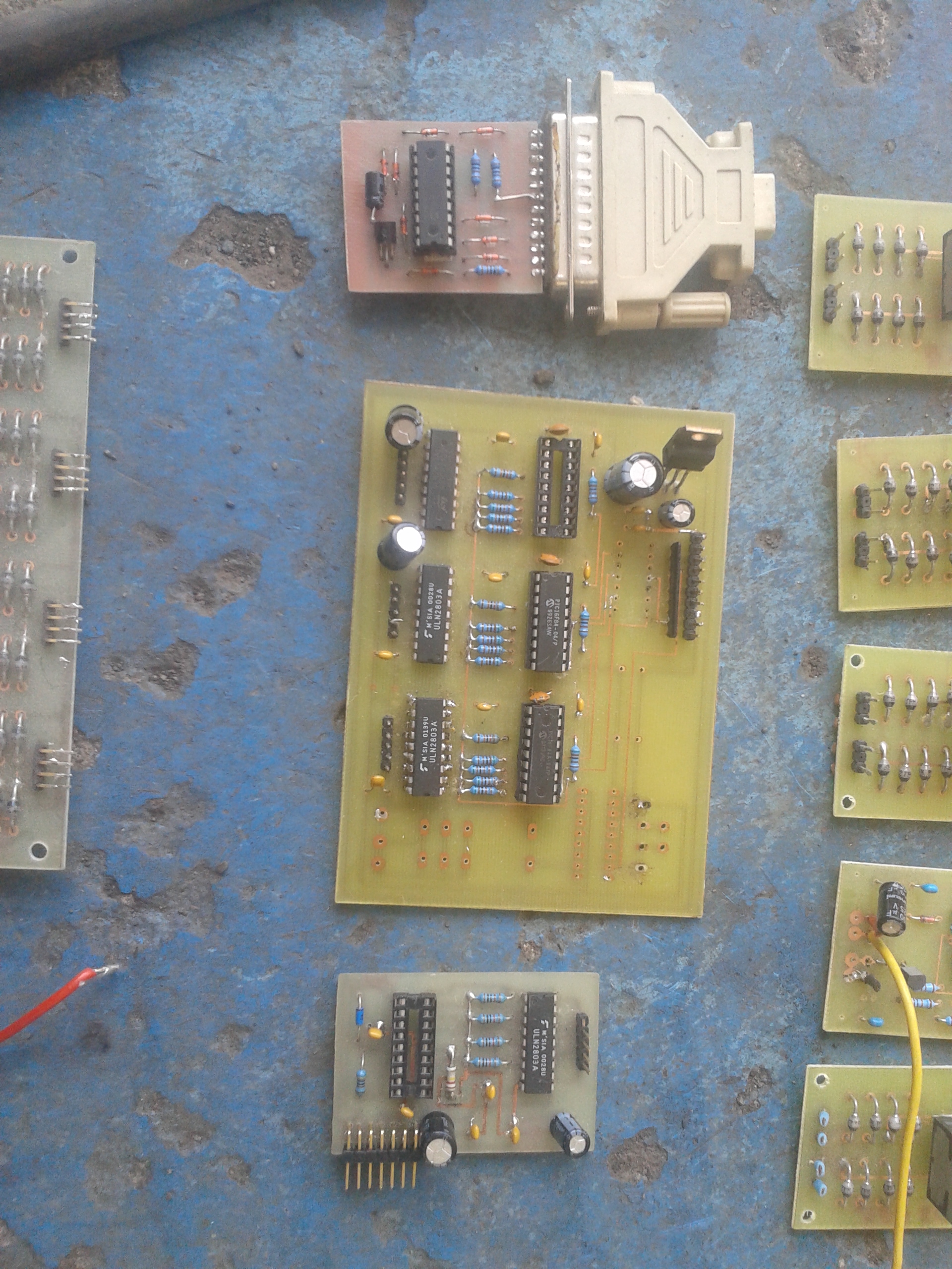 Po úklidu jsem narazil na bednu s deskama na kterých jsou L297 a L298 z dob před cca 15 lety když jsem si hrál s drivery pro krokáče. Bohužel desky jsou špatně navržené a tak mohou sloužit jako zdroj L297, L298 případně diod a dalších prvků. Dále mám programátor na pic 16 tky a pokusné desky s Pic 16 společně pro ULN2803 ( hrál jsem si s tvorbou driveru pro krokáče).