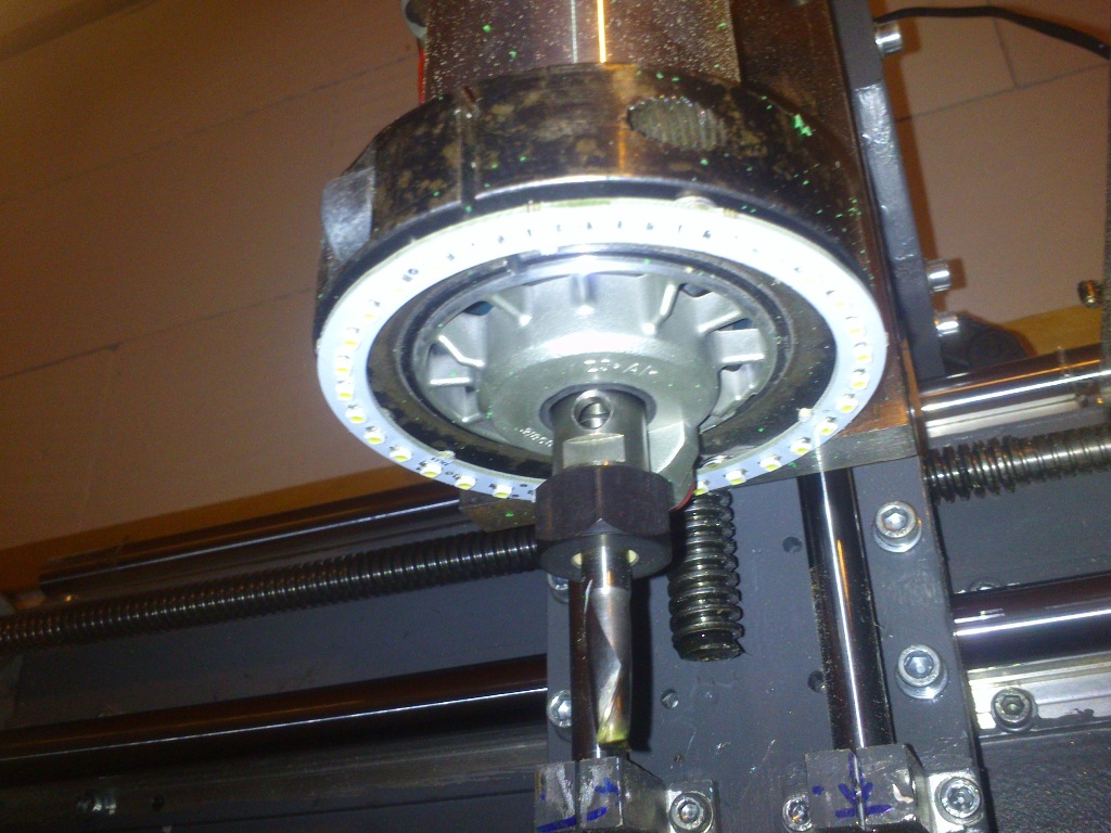 Já si chtěl původně vyrobit taky "led ring" ale nakonec mi přišlo výhodnější vyrobit dva plochý moduly a ty umísti po bocích frézovací nástavby, protože tak pokryjí světlem větší plochu, nepletou se pod ruce při povolování nástrojů a nemusí k nim být pružný přívod.