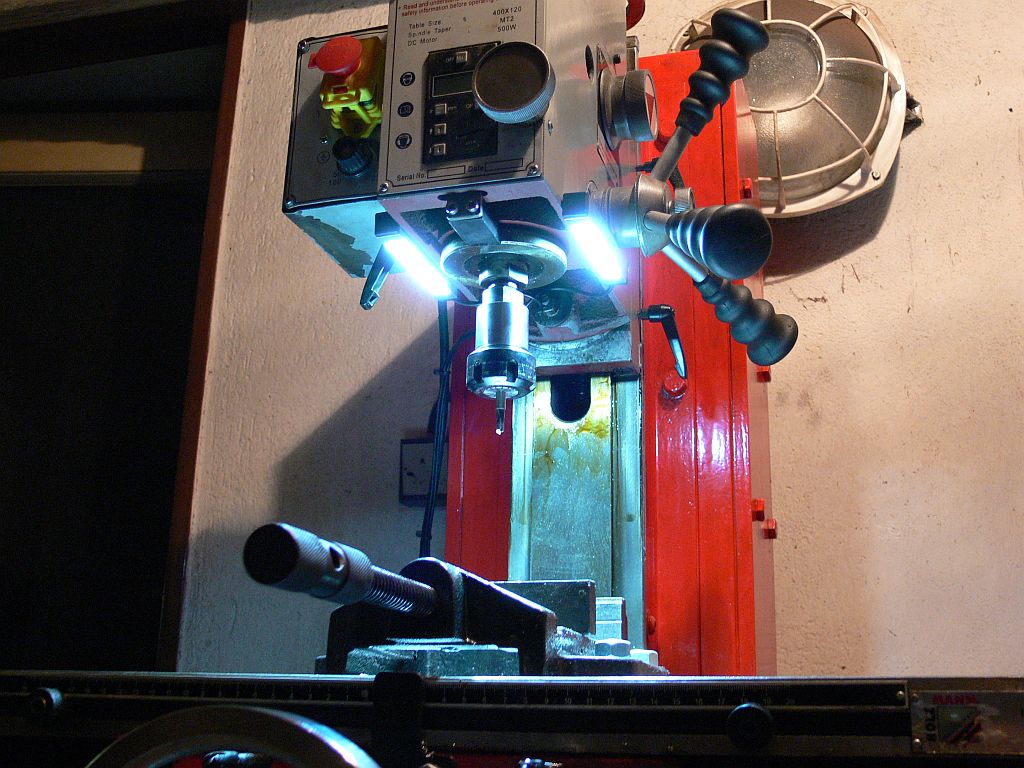 Pravdou je, že odešel jen zdroj, ne LEDka (kompaktní chip, bílá 6500K), ale světlo u mašinky je vynikající. (malej prostor, odraz rohem mezi stropem a stěnou...)