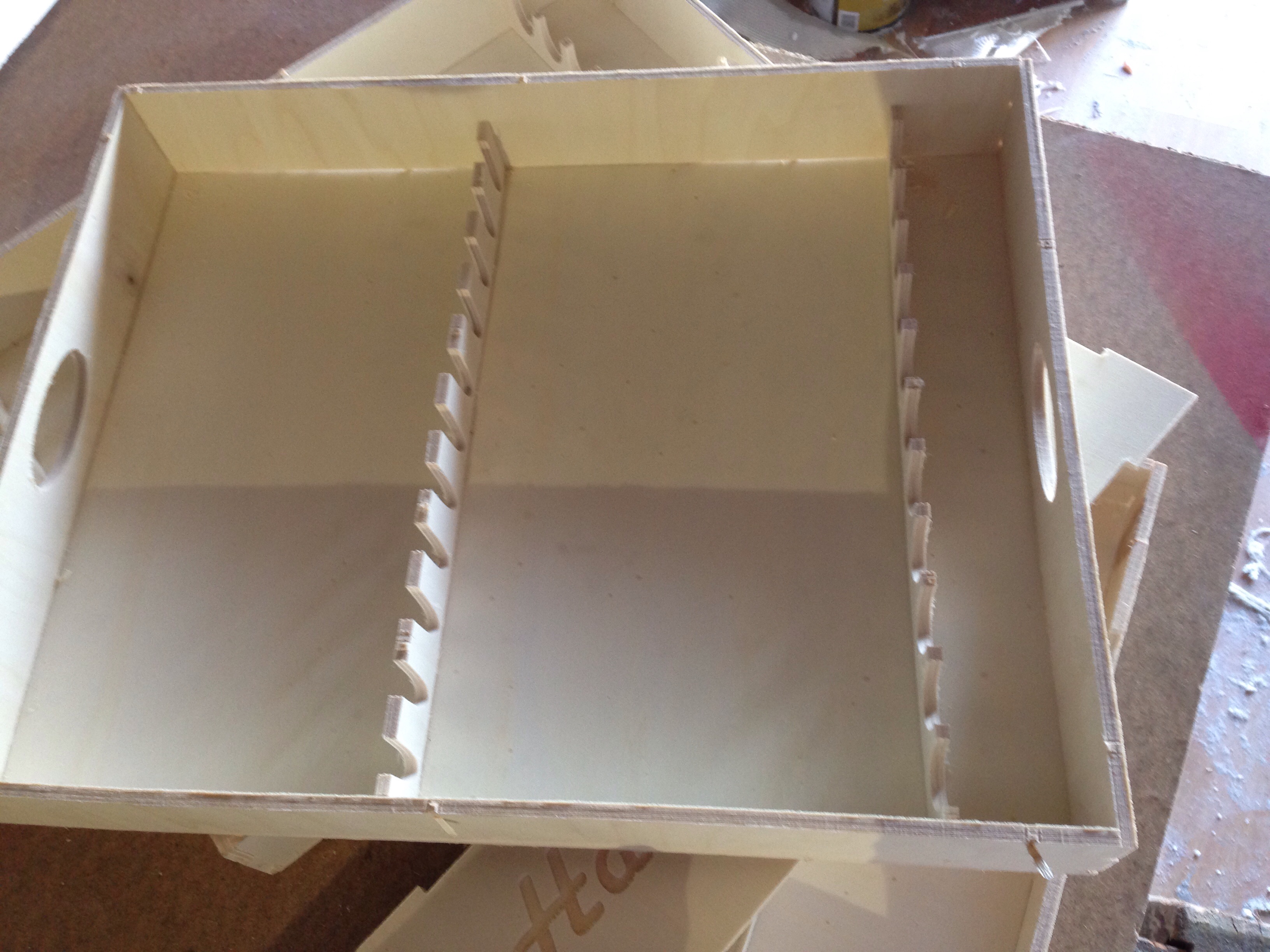 Krabice otevřená s držáky na výrobky. 50x45x6 200kč.