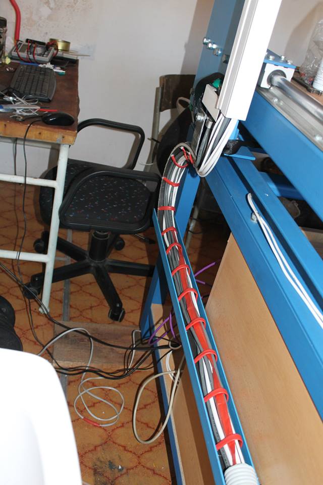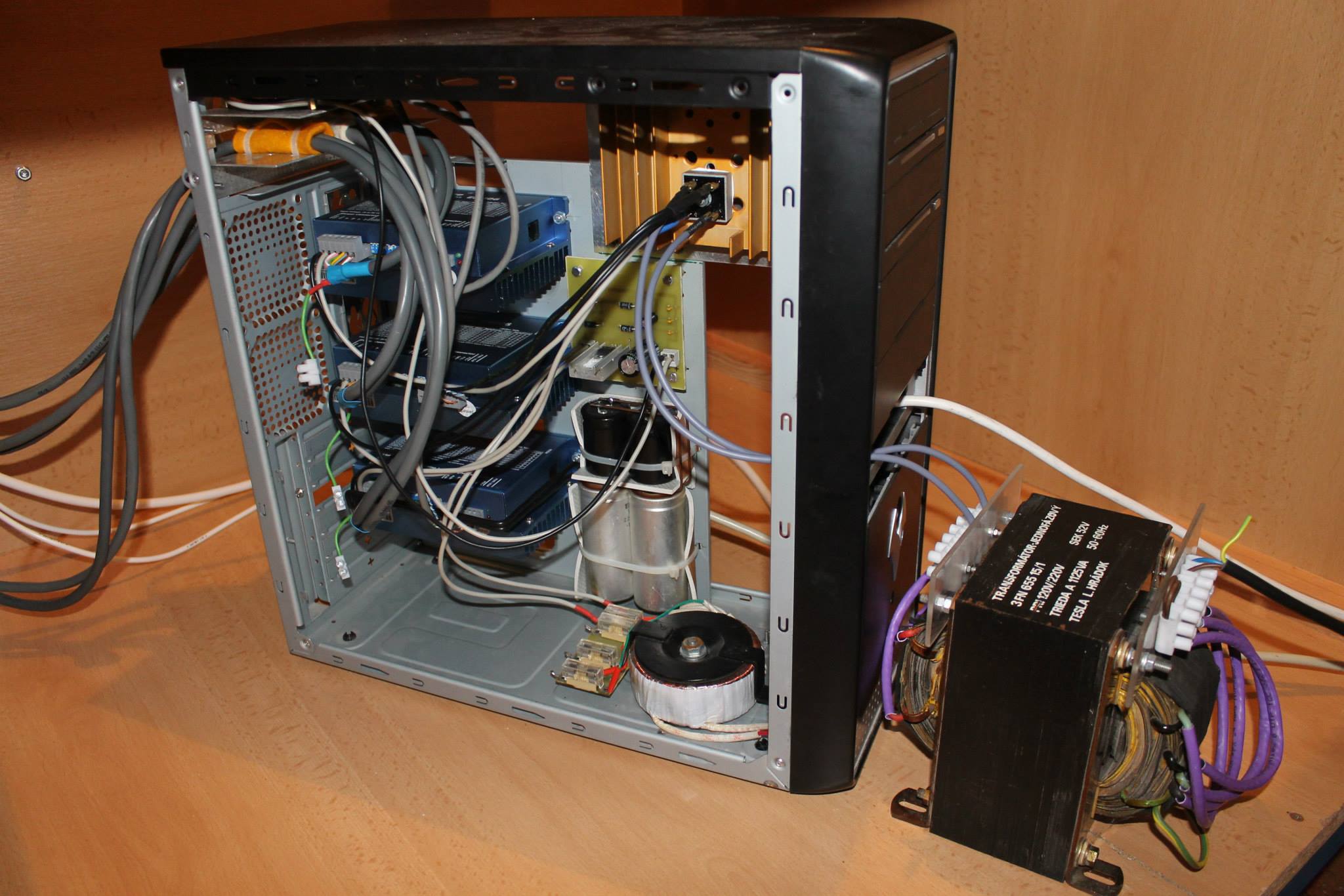 Napájecí napětí je 70V. Řídící software je Mach3. PC: AMD 2,2Ghz, 1GB ram, 200GB disk. Nově přeinstalován a běží na něm pouze Mach3.