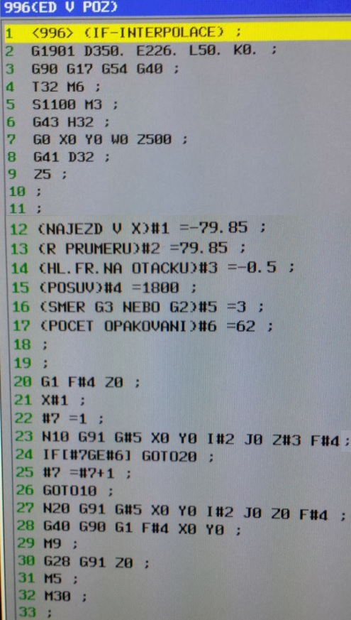 pokud napíšete hloubka frézování na otáčku po 0,5 mm - tak při počtu opakování 62 to pojede do hl.31