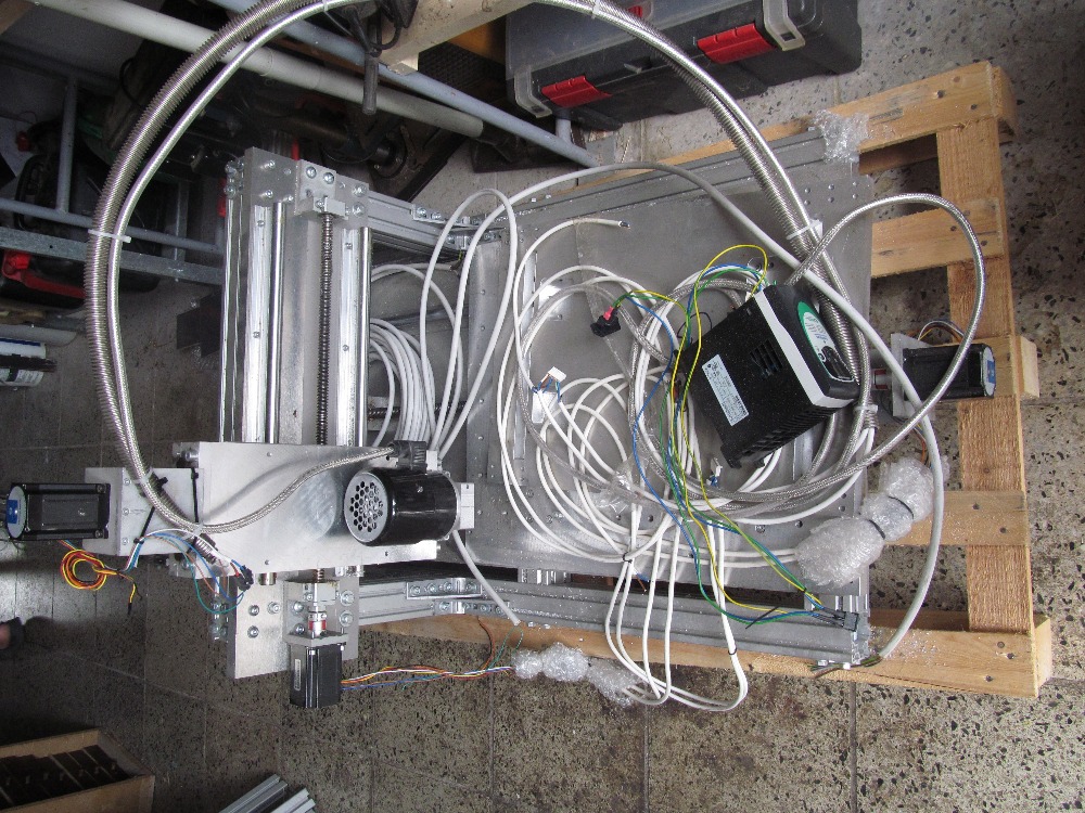 součástí je vřeteno, frekvenční, měnič trocha materiálu, nepatrně ohnuta trapézovka na ose X, znát je to při vyšších rychlostech,