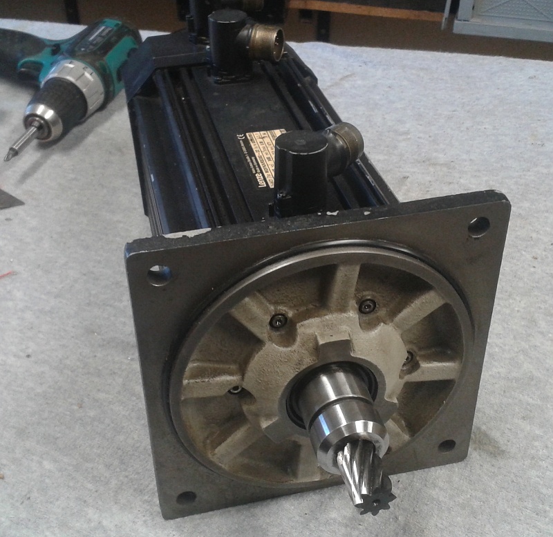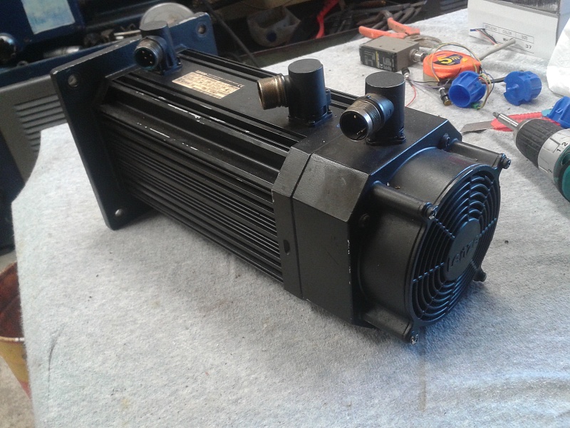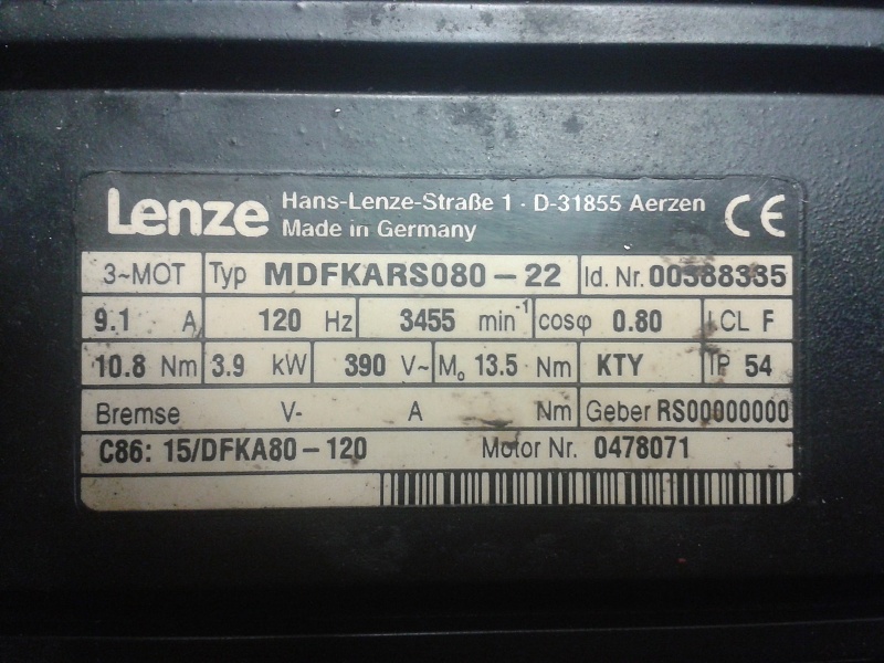 Je to vlastne spec. asynchronak s resolverom o vykone 3.9Kw typ LENZE MDFKARS080-22 bez brzdy s pernam. ventilatorom.