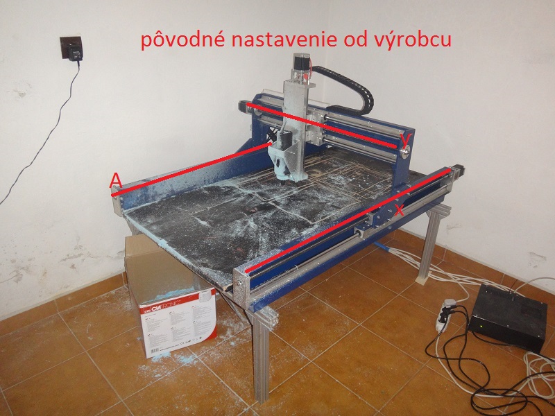 Zanechal som vymenené osi čiže os Y mala dva motory a os X jeden motor. Stroj som nechal bežať cca. 2,5 hodiny. Výsledok bol odchýlka na ose X 10 mm.