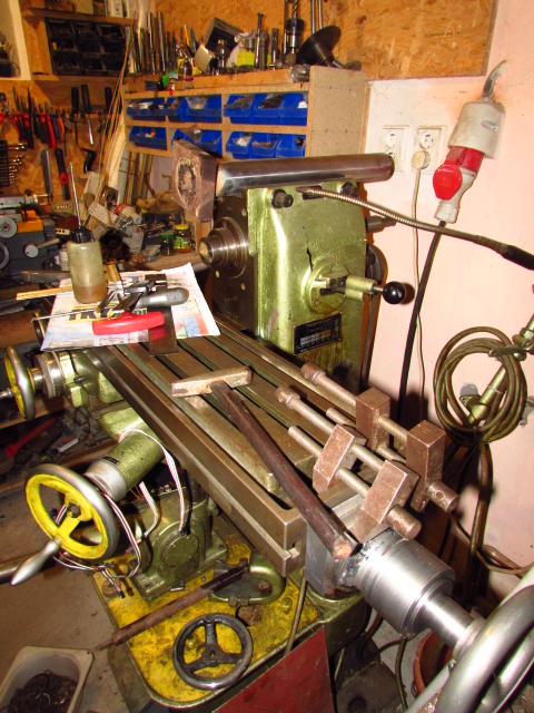 Podobnú ako na tom Aukre mal známy na predaj za 500€. Páčila sa mi, a bola aj velmi zachovalá, no na tretiu frézku už nebolo miesto, tak som ju dohodil kamošovi od Přerova. Nedávno mi poslal fotky, ako tam dorobil skrutku na pozdĺžny posuv, a mal rozpracovanú zvislú hlavu myslím na ISO 30