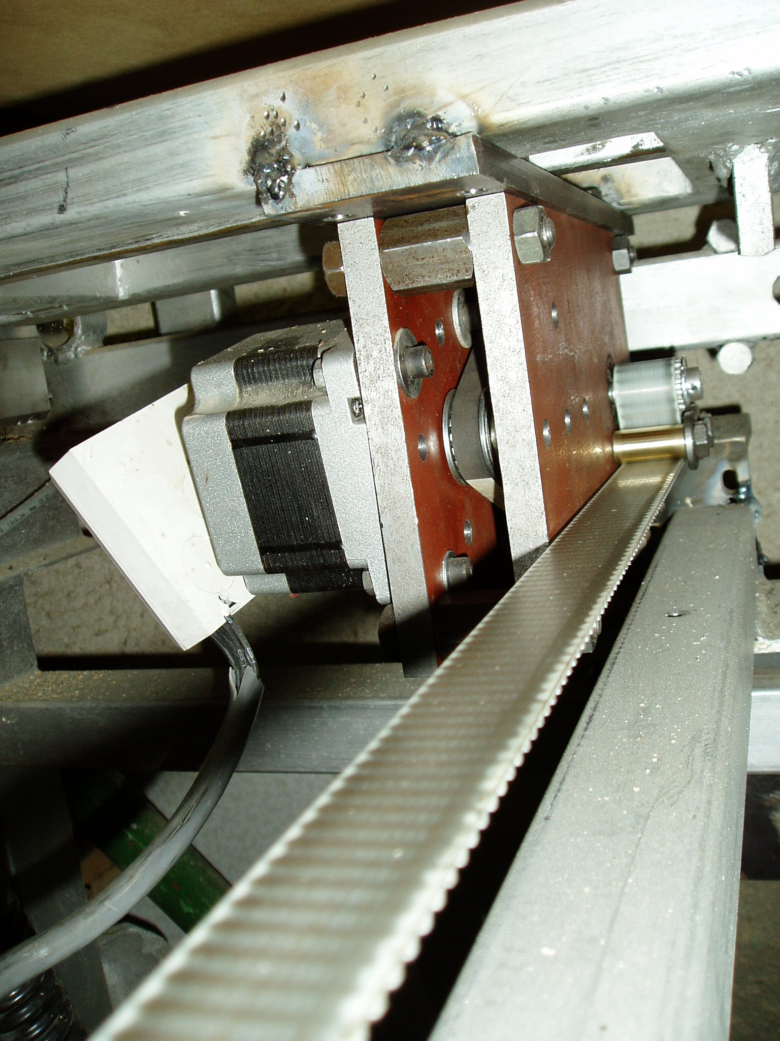 Posun na X som vyskúšal prerobiť na remeň. Dnes som ho testoval pri vyrezávaní a mám pocit že na obrábanie dreva je to dostatočná aternatýva pohonu. Ešte nahradím motor za silnejší asi 6,4 Nm a bude to ok.