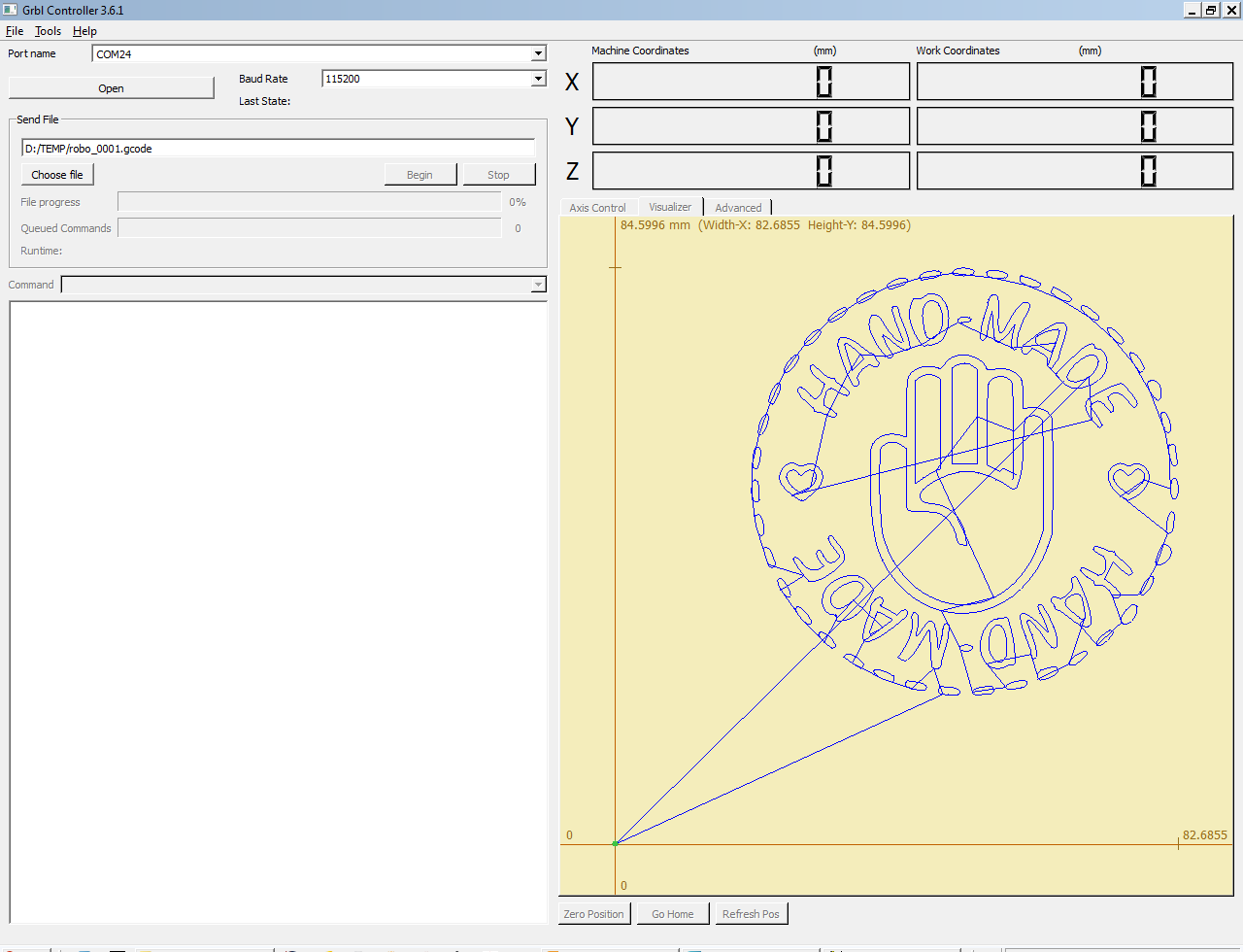 na samotne ovladanie stroja sa pouziva sw GBRL controler / data sender