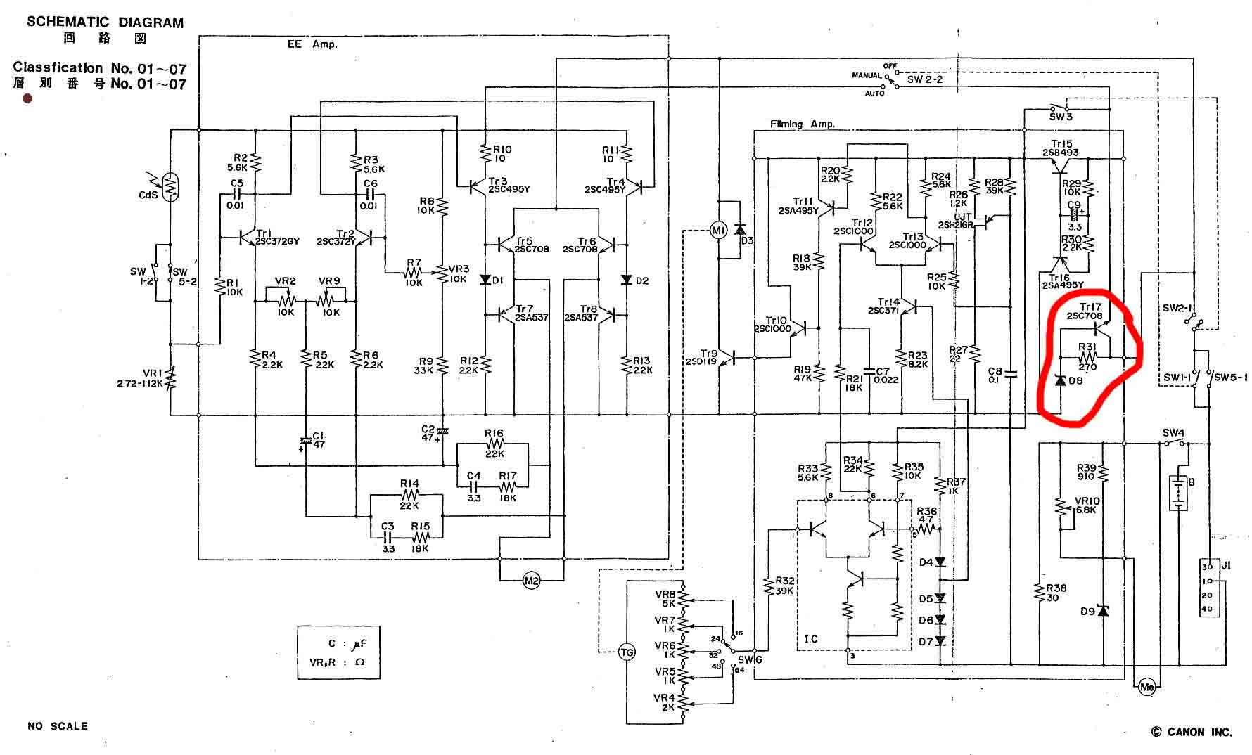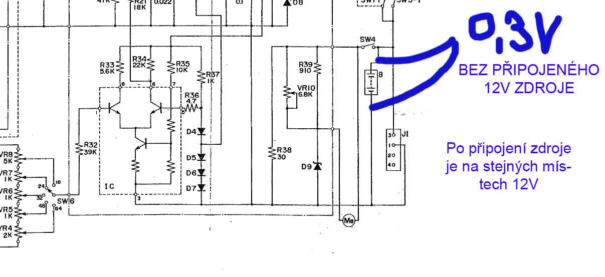 Robokop, dal jsem to někomu kdo dělá elektorniku, dokonce jsem obědnával součástky, které byly skoro ekvivalentem (ty vybíral starý TV opravář - v té době žil) , protože se dnes podobné součástky neseženou vždy nějaká ta hodnota byla trochu odlišná. Vyměnili jsme všechny tranzistory a ty stříbný hlavičky s více nožičkama. Nic se nehnulo! Součástky mi přišli až z Číny aby mi přišli ty co nejvíce podobné... S tím ČVUT-ákem jsme se rozhodly, že bude mnohem snažší to vyrobit celé nové a né tak složité. Jako reakcí na to jsem to z kamery odpájel, a kameru připravil na nový systém (schéma). Jediné co potřebuji aby fungovalo je drapák kamery a posun filmu. Expozimetr mě nezajímá, protože stejně mám extreně spotmetr, a ono měření nabitosti baterky by bylo fajn, ale také se bez toho obejdu. Jediné co potřebujy je ustálit běh motoru a to posléze replikovat 5x u čehož vždy jen změním otáčky trimerem... Už jsem vzdal aby fungovala jako nová, jde mi hlavně o to, aby z ní byl stabilní obraz. Řeším to už od ledna, kdy mi přiletěla z LA. Pokaždé u někoho je a ani s tím nehne stále něco platím a jediné co chci je aby šlapal motor. Ten jede klidně po jednoduchém zapojení na baterku, tak už jen tu zpětnou vazbu. Hodnoty součástkek se právě snažím od někoho tady zjistit. V příloze mám jeden takový kontrolér a já potřebuji zapojit napětový dělič pro snížení 30V z generátoru na 2,7v jak je ve schematu.. A poté by snad platili ostatní součástky.