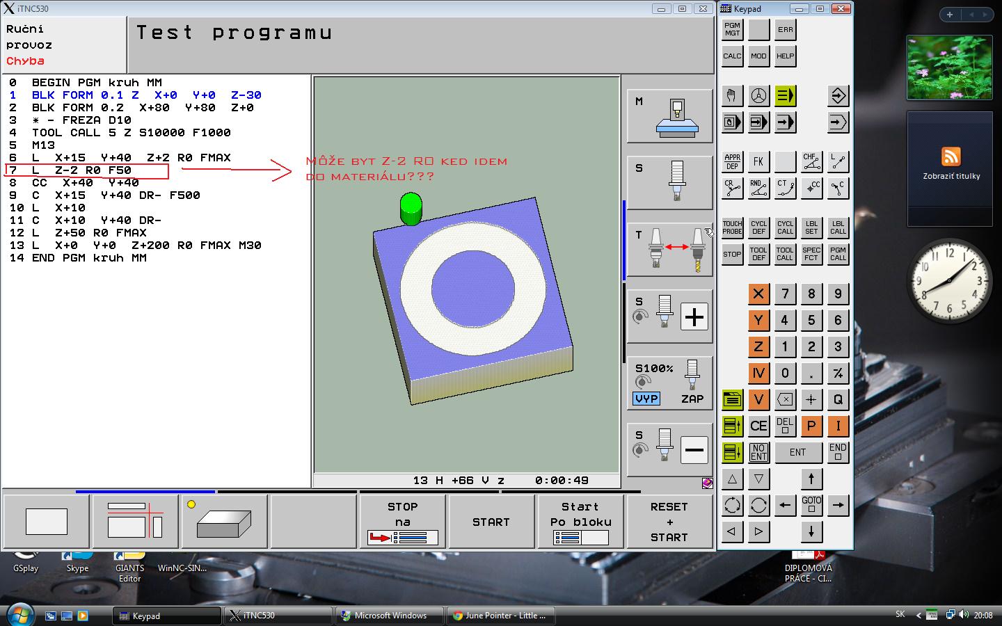 Zdravím. Vyskúšam to bez korekcie a dam vediet. Ale mam teraz dalsi problem a to s cyklom trochoidalna drazka. Môžete mi prosim skontrolovať? Dakujem.