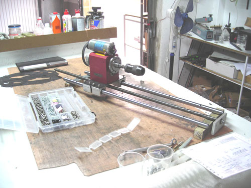 No spíš teď řešim dilema: Hejbat celym vřeteníkem jako osou Z a používat před stacionárním kleštinovým vřeteníkem jen stůl s osou X, nebo mít za stacionárním vřeteníkem ještě obě osy? Druhá varianta jistě hodně ušetří kleštinu když se to v ní nebude stále posouvat a eliminuje se tím nepřesnot průhybem materiálu. Ale zas to bude složitější a dražší. Posnášel jsem zkusmo ze všech rohů dílny co dílna dala a ono se to asi bude brzo samo hejbat:)