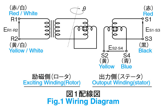 Nedávno jsem se s Lubošem bavil na téma zde probíraného resolveru a tak si dovolím oživit tohle téma. Je to tak jak píše Thomeeque, jedná se o resolver v konfiguraci 2 Phase Input / 2 Phase Output. Taky se mu říká diferenciální resolver. Oproti standardnímu resolveru v konfiguraci 1 Phase Input / 2 Phase Output má navíc druhou budící cívku natočenou o 90 stupňů proti té první: