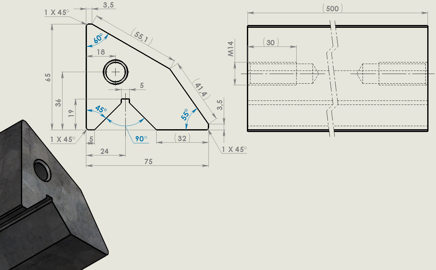 Nebo můžu zhotovit pravítko úhlové s 45 stupňů tušírovací plochou.
