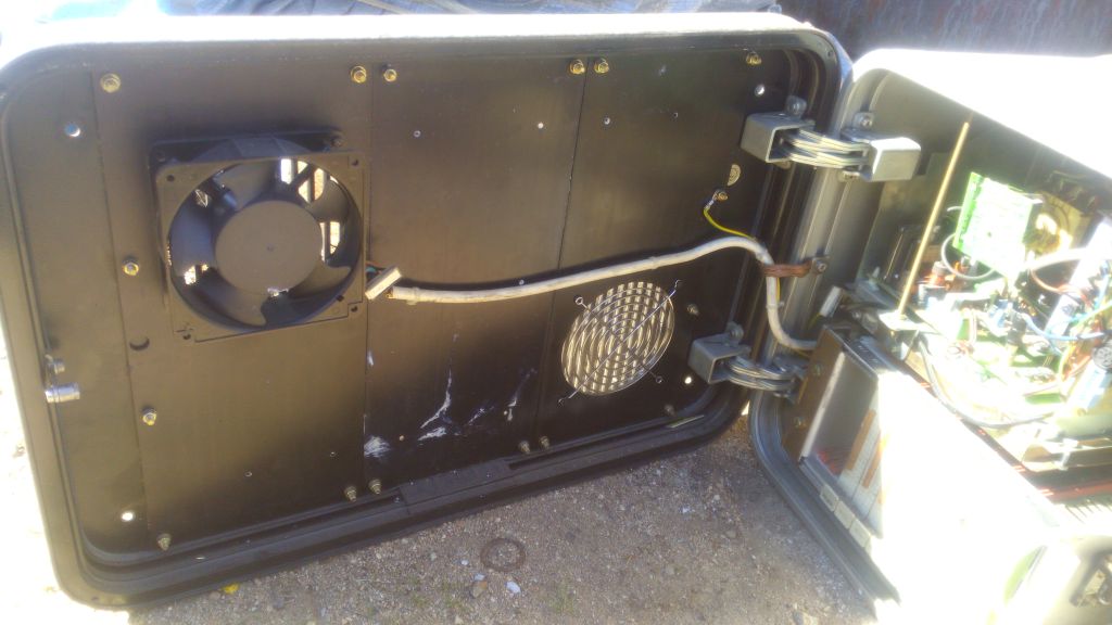Zadní čelo je otevírací a téměř přez celé je hliníkový chladič s větrákem..