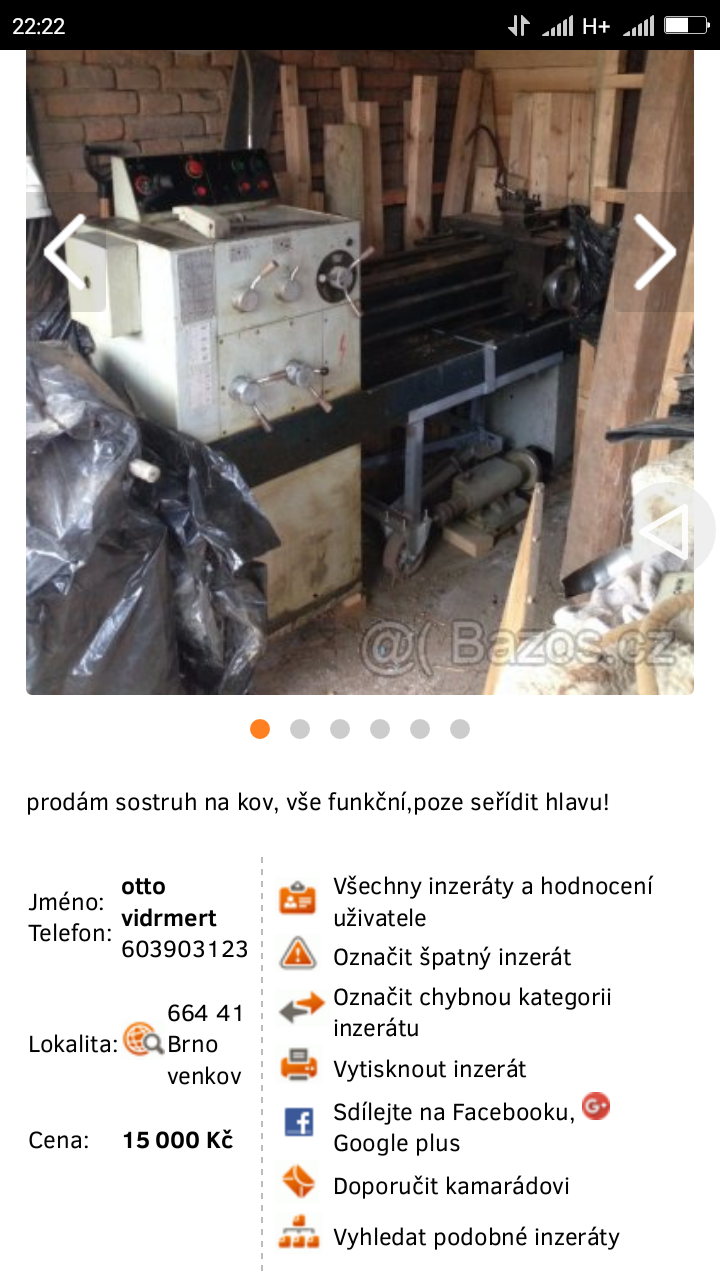 Včera byla úrodná sobota. Ten soustruh za tyhle peníze mě dost překvapil. Taky jsem to hned řekl jednomu kámoši co takový shání. Bohužel jet do Brna s náklaďákem je dost nejisté. Až dojedeš na místo, už ti nikdy nevezme telefon a podnikl si hezký výlet. Za 25korun na km.