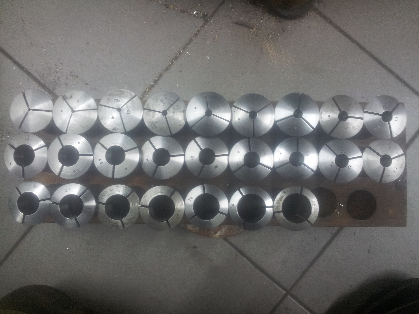 Sada kleštin k soustruhu SV 18 nebo SM 16 celá čísla velikost 2-26 mm po jednom milimetru.