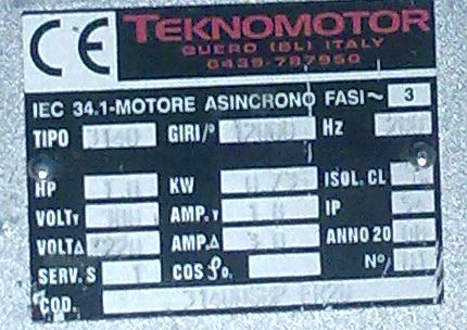Foto štítku motora je slabo čitatelné.