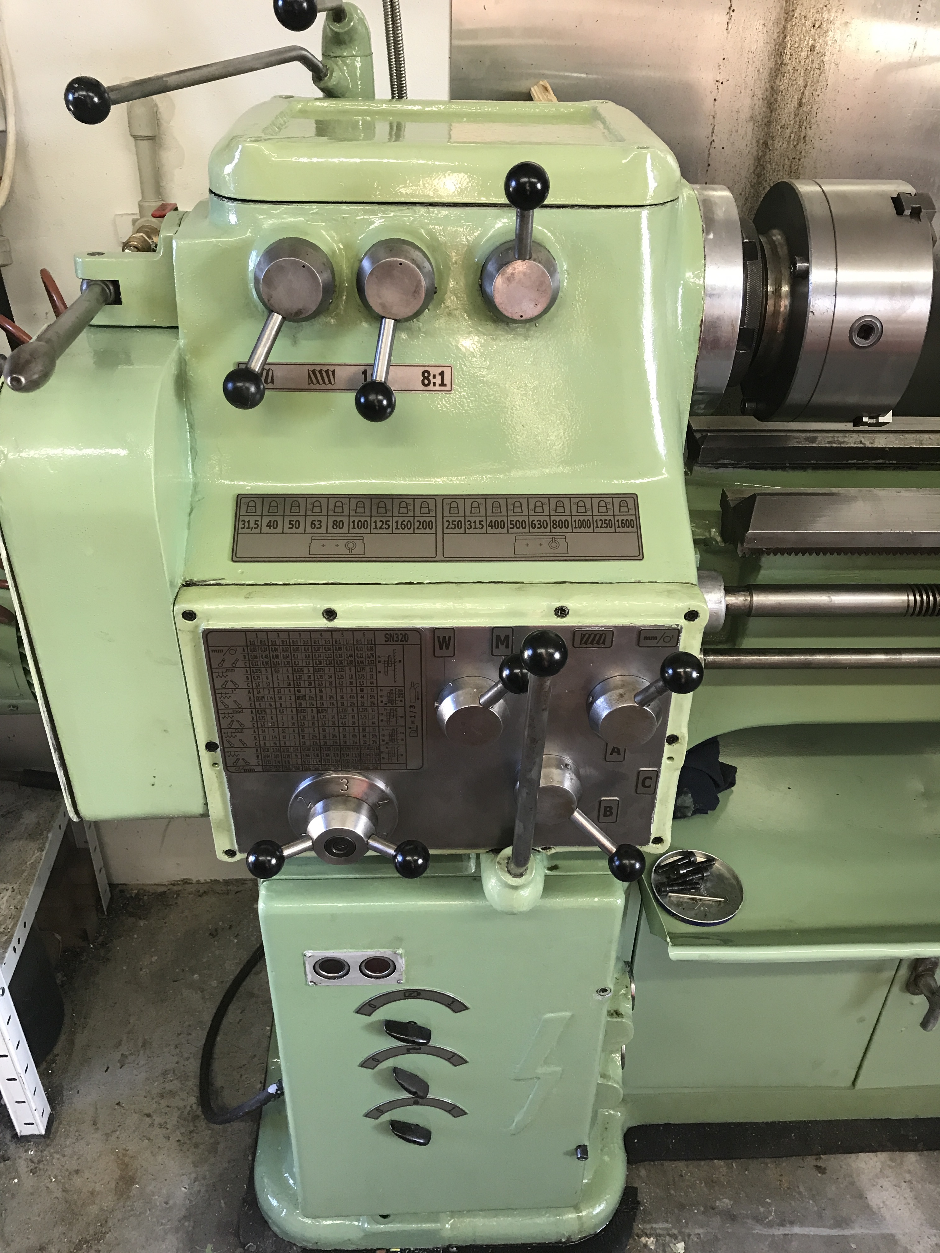 Na mašině jsem před samotným lakem vyměnil několik součástí, ložisek a těsnění, dál jsem zprovoznil suportovou pumpu a dal do kupy elektroinstalaci. Taky jsem pro mašinu přizpůsobil kleštinové rychloupínání z S28 a nechal vybrousit upínací kužel, co se dává do vřetena.